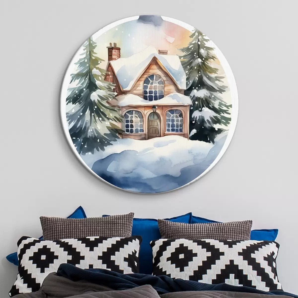 Obrázok Vianočná dekoračná guľa s akvarelovým snehovým domčekom a borovicami Nr r41363