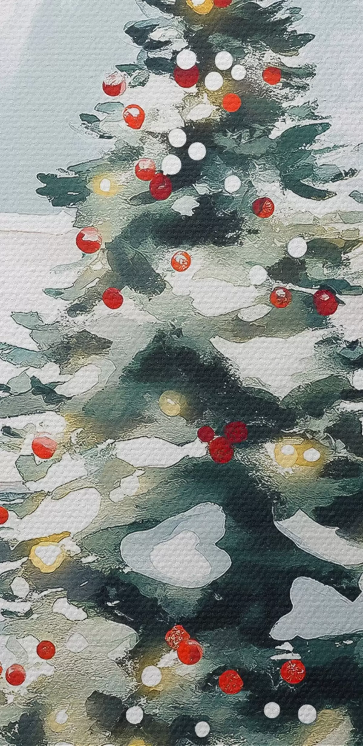 Obrázok Zimné mesto, ozdobená borovica, Vianoce, akvarel Nr r41364