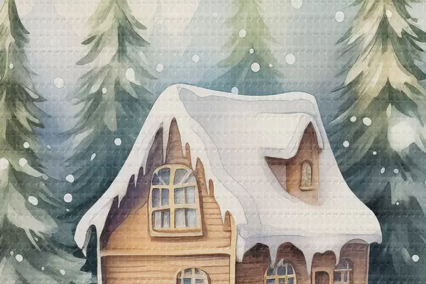 Obrázok Akvarelová krištáľová guľa so zimnou scenériou, dom v lese, sneh Nr r41366