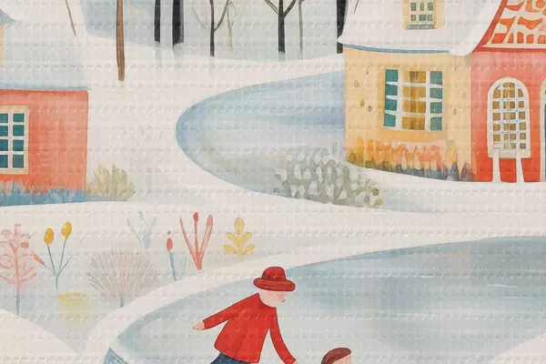 Obrázok Zimná dedina, les, kvety, korčule, farebné domy Nr r41378