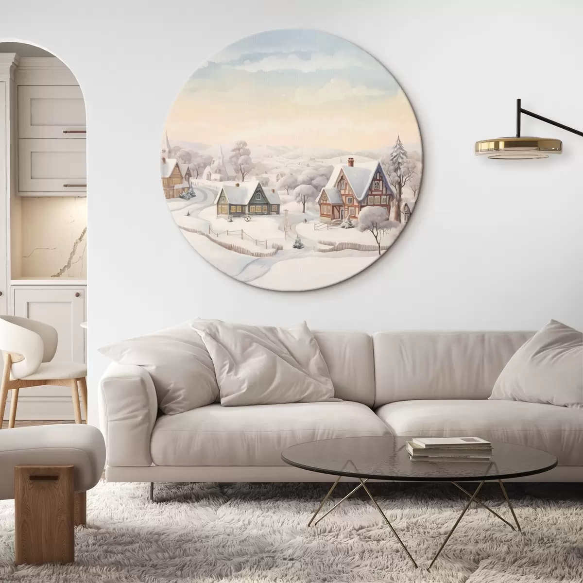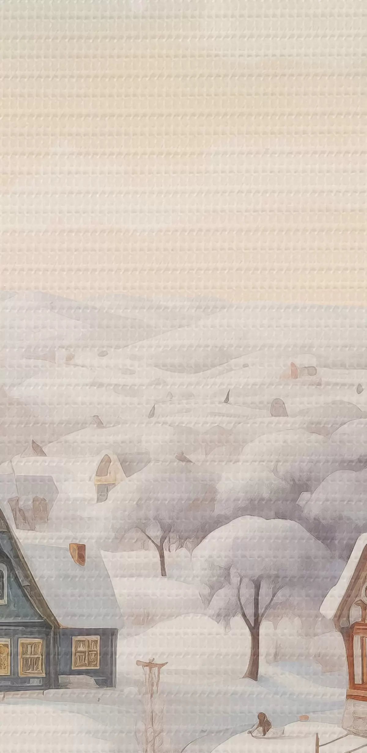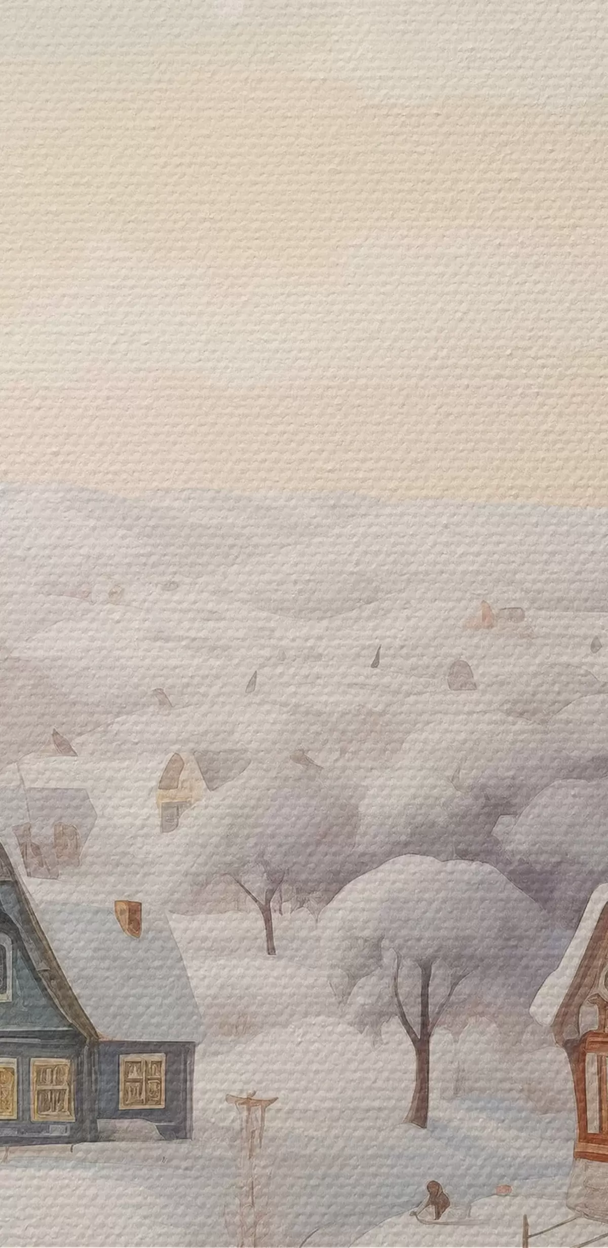 Obrázok Krásna zimná krajina s dedinou, stromy, domy, akvarel Nr r41379