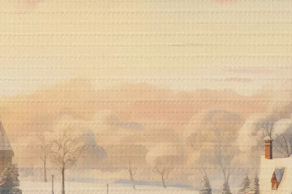 Obrázok Zimná krajina zázrakov, domy, obloha pri západe slnka, stromy, akvarel Nr r41383