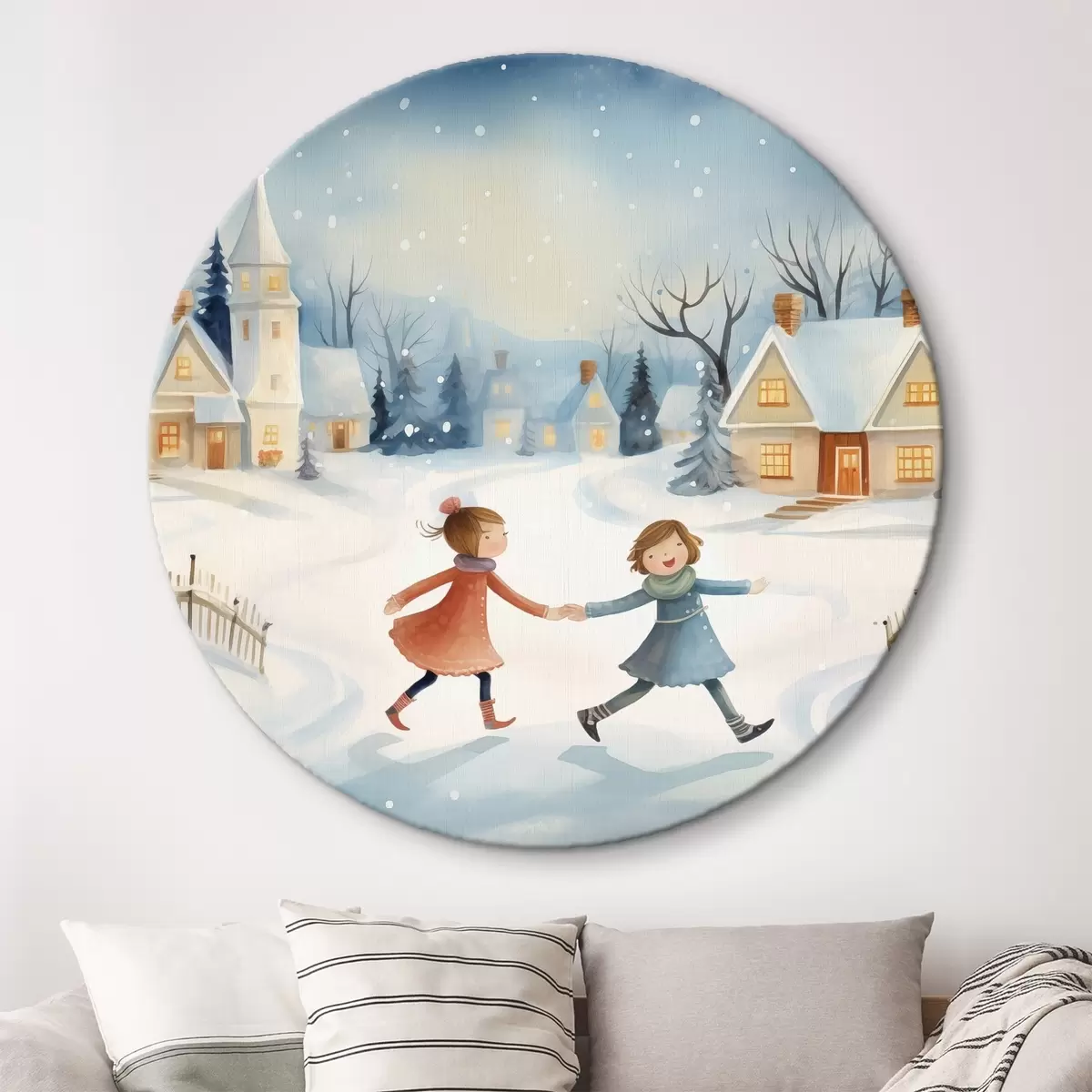 Obrázok Dievčatá v zimnej dedine, snehové vločky, akvarel, domy, les Nr r41385