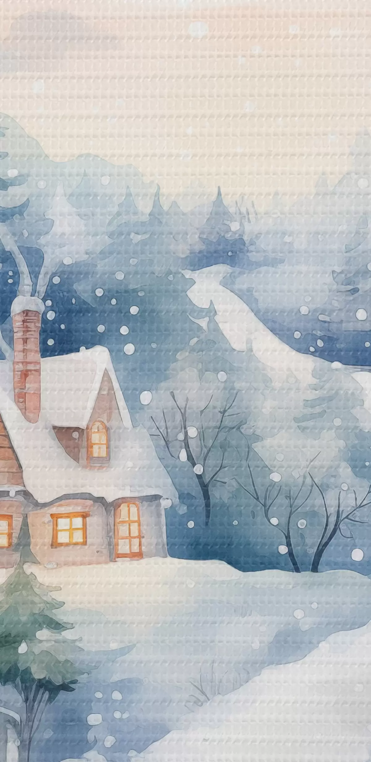 Obrázok Akvarel zimná krajina, borovicový les, domy Nr r41387