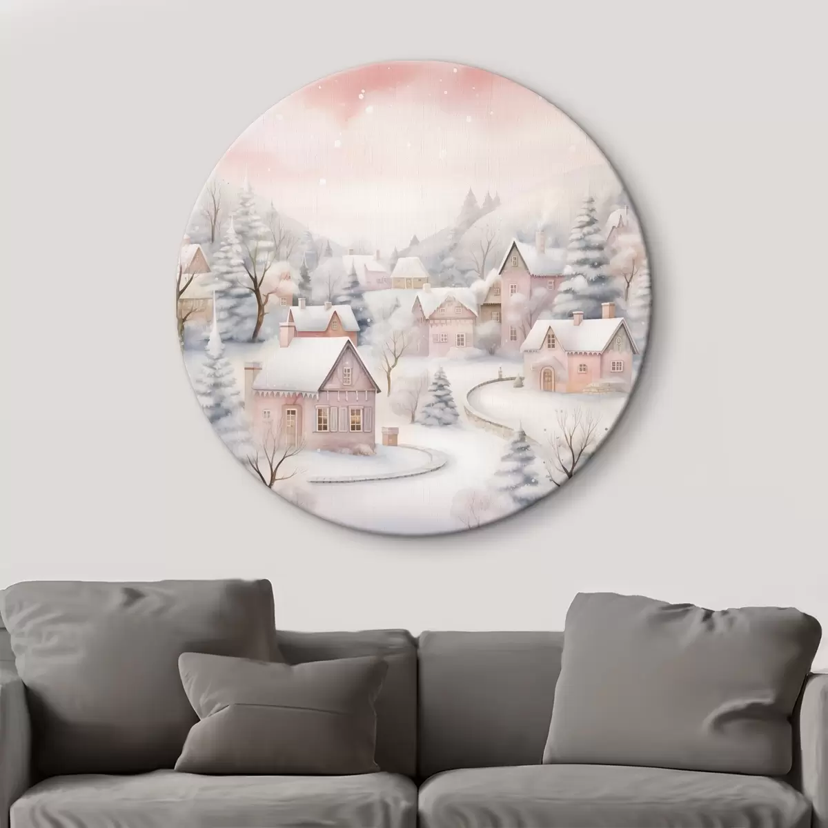 Obrázok Akvarel zimná dedina, borovicový les, domy, hory, jemné pastelové farby Nr r41388
