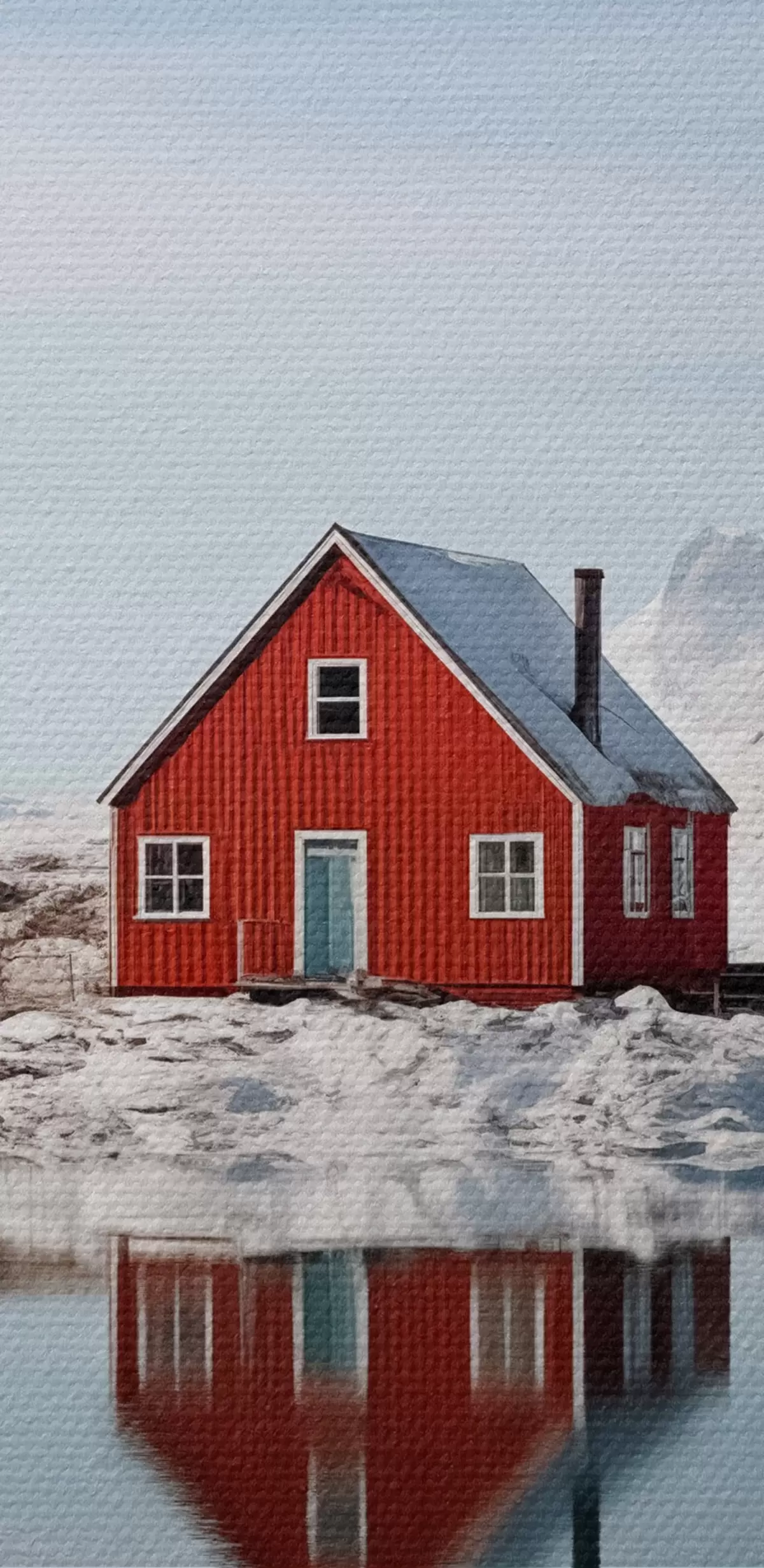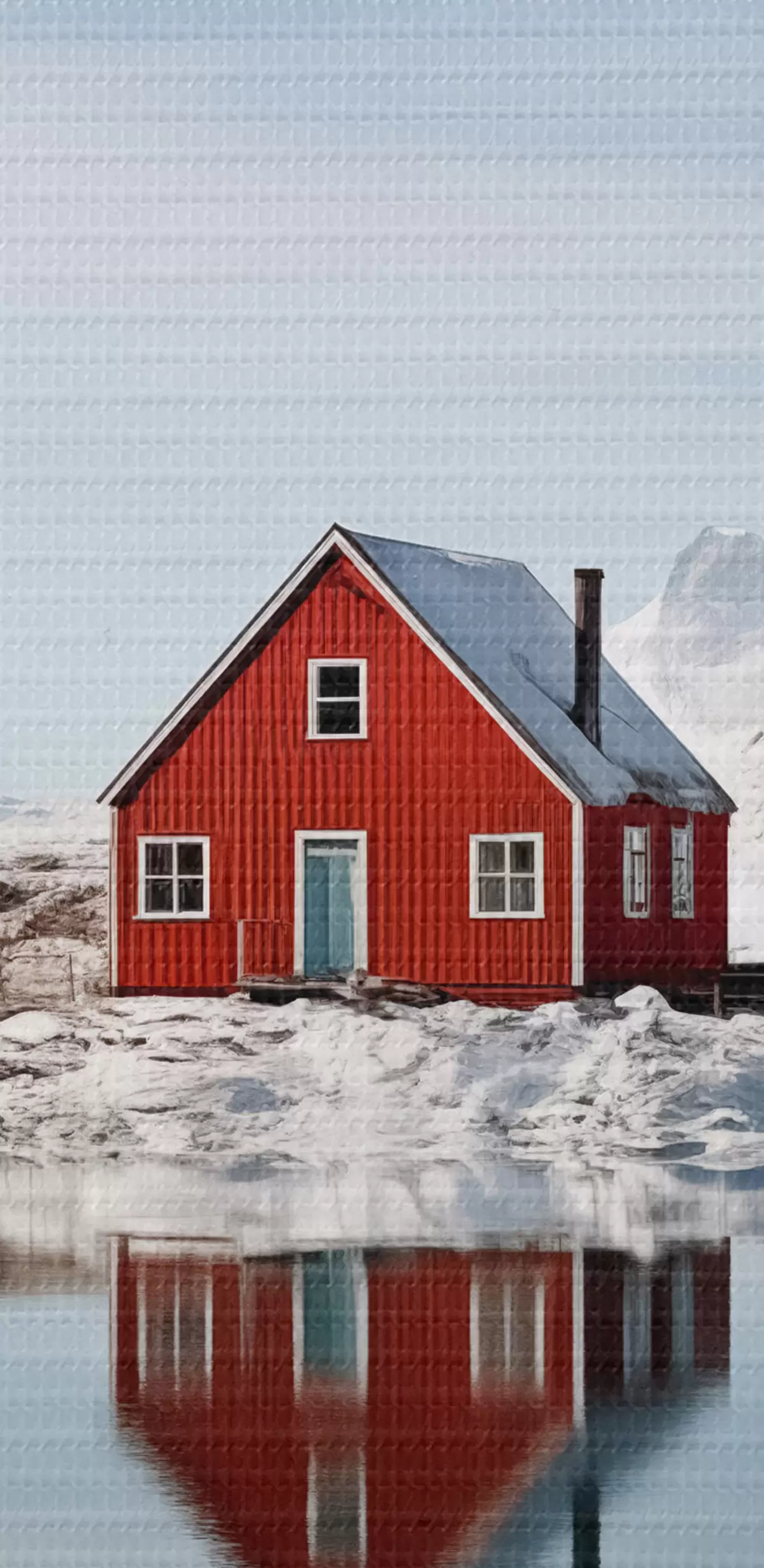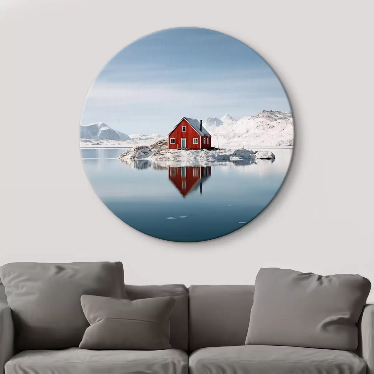 Obrázok Minimalistická zimná krajina červený dom pri jazere Nr r41437