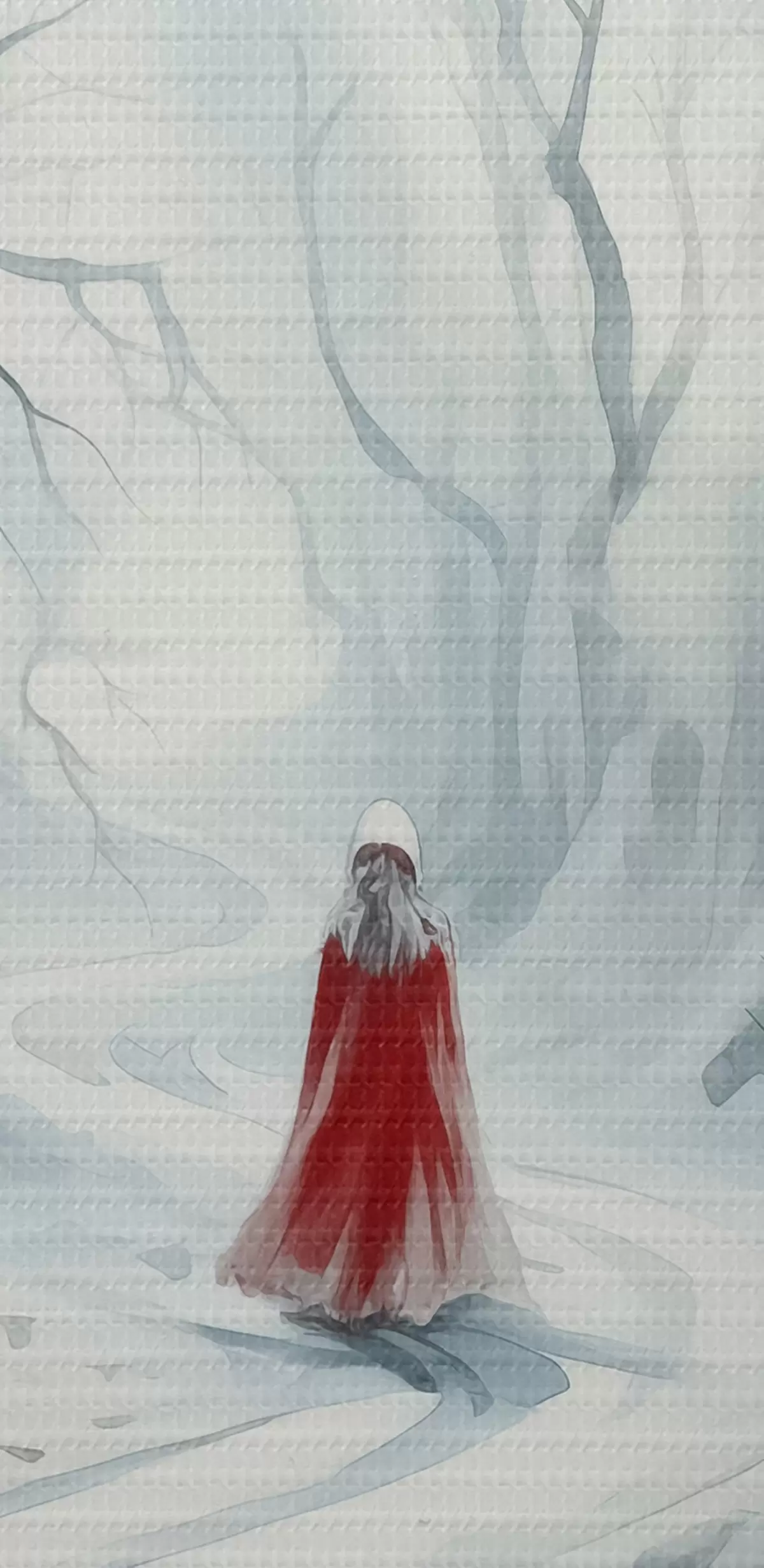 Obrázok Muž v červenom kabáte uprostred zimného lesa Nr r41438