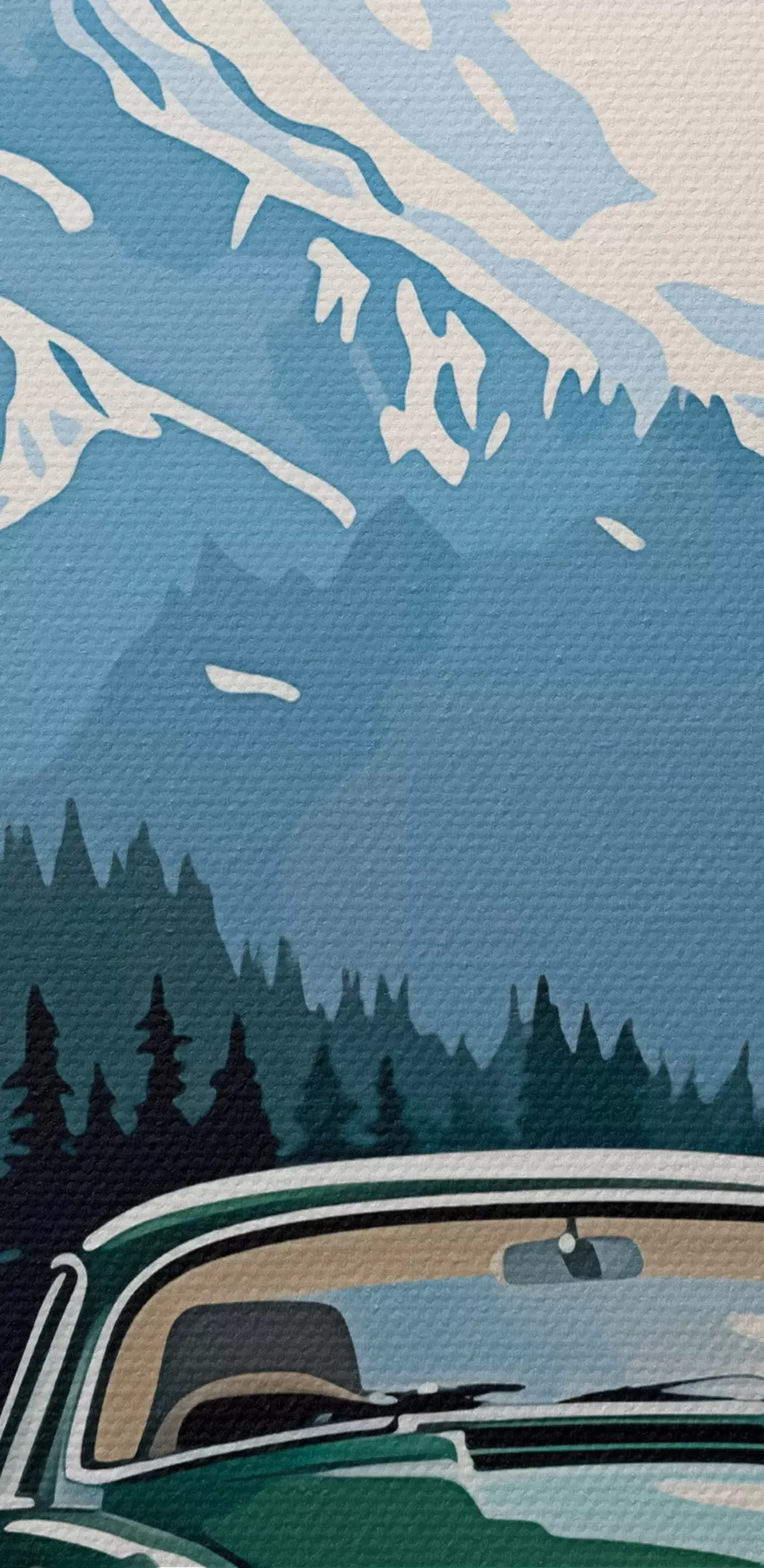 Obrázok Retro auto na zimnej horskej ceste Nr r41478