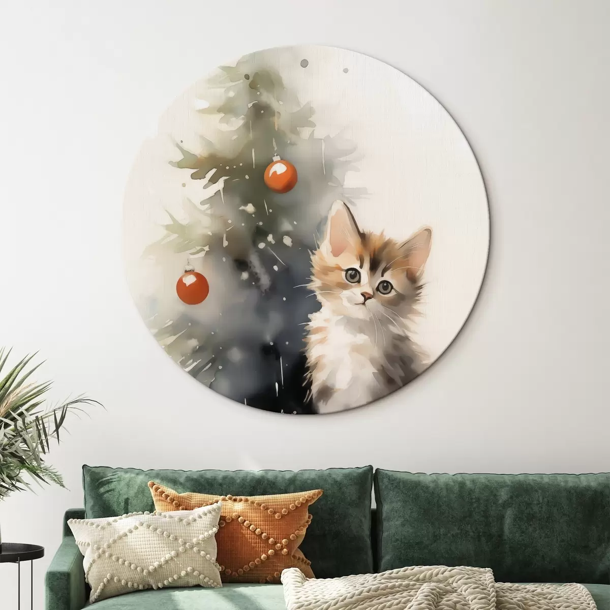 Obrázok Mačiatko pri vianočnom stromčeku imitácia mokrého akvarelu Nr r42140