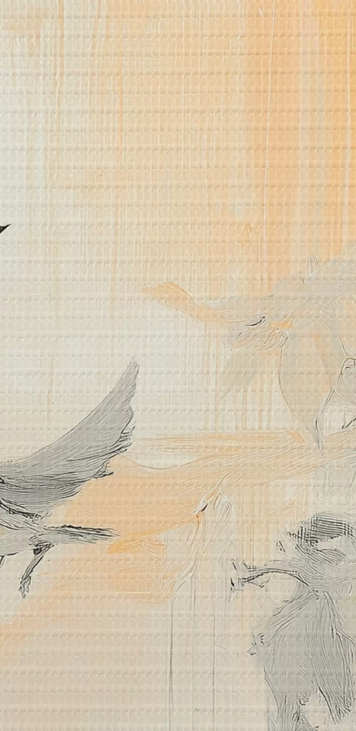 Obrázok Abstrakcia s vtákmi, akryl, sivé a béžové farby Nr r42206