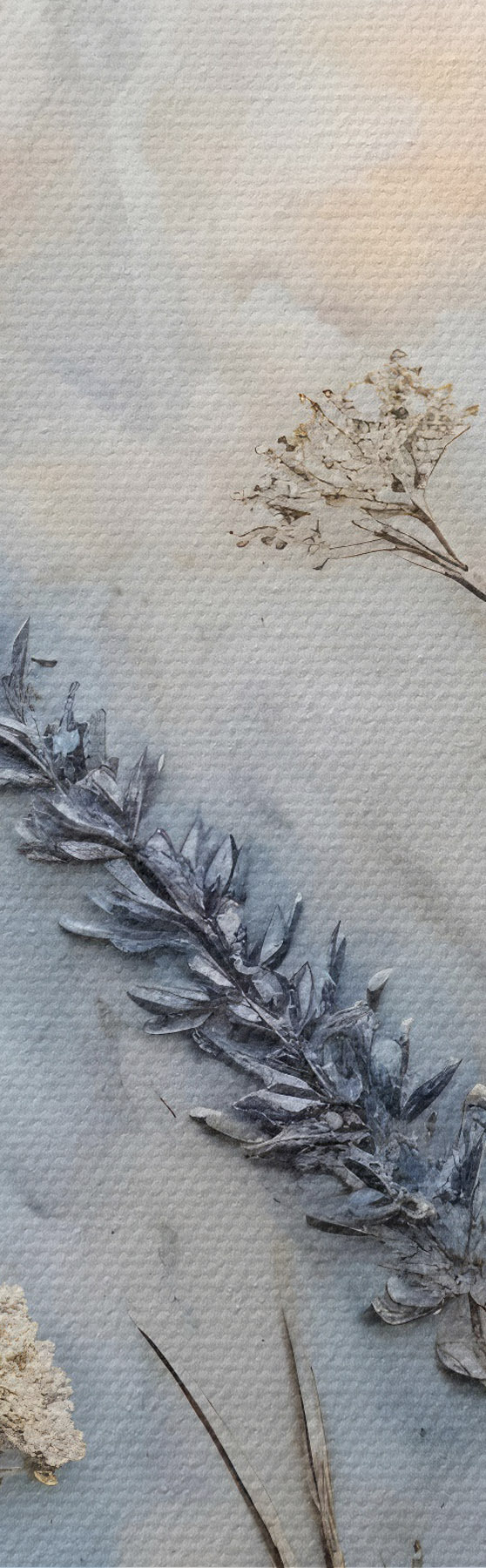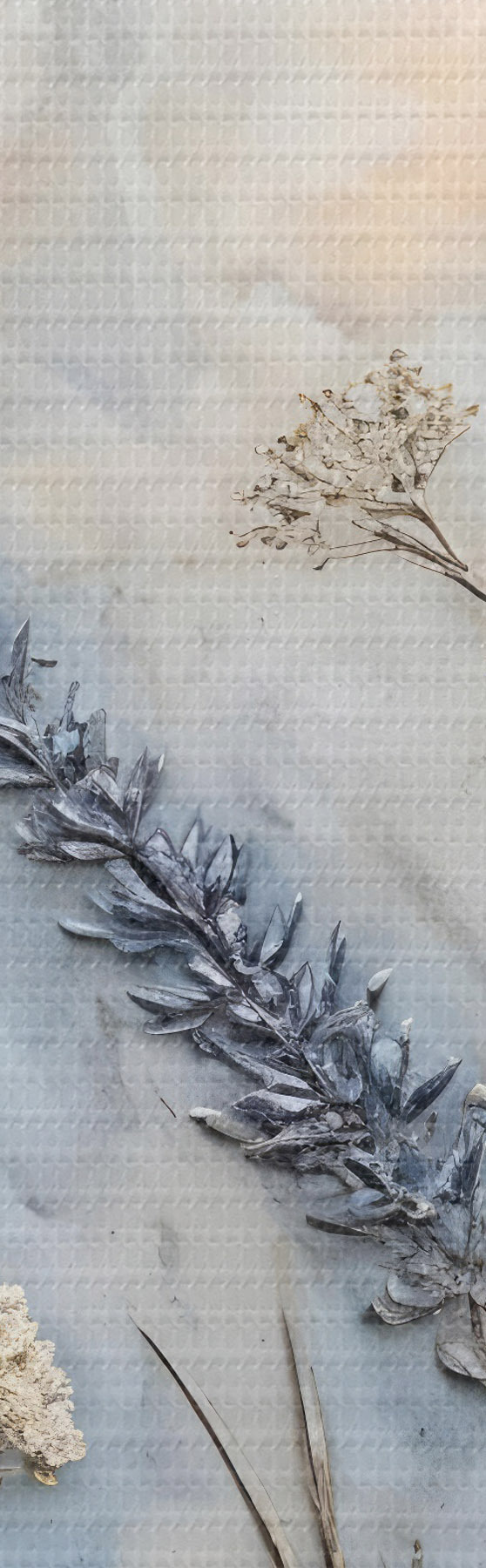 Obrázok Pole rôznych divokých kvetov a rastlín v odtieňoch modrej, bielej a béžovej na jemnom, hmlistom pozadí Nr r42214