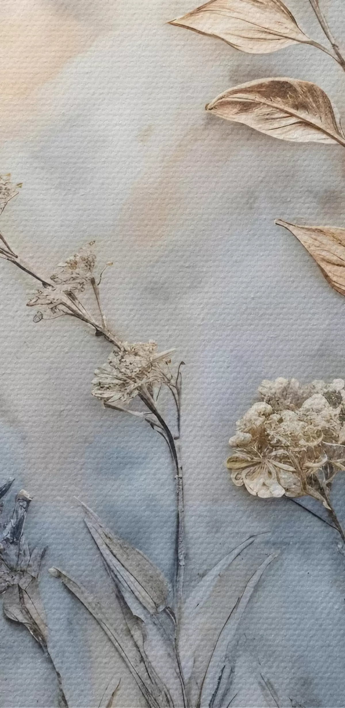 Obrázok Pole rôznych divokých kvetov a rastlín v odtieňoch modrej, bielej a béžovej na jemnom, hmlistom pozadí Nr r42214