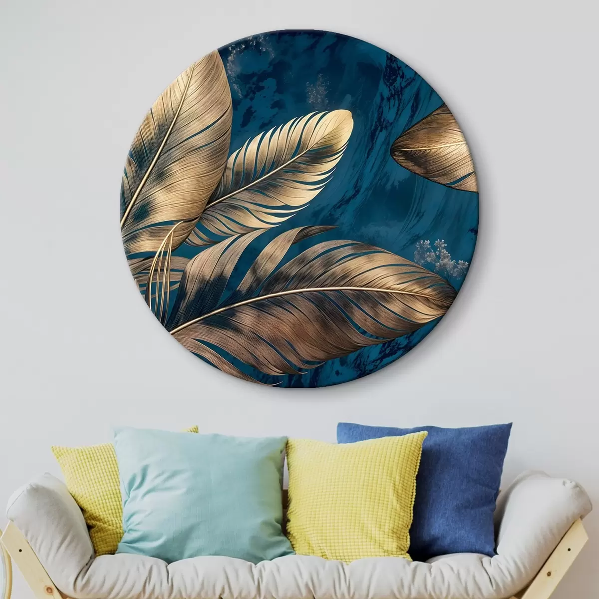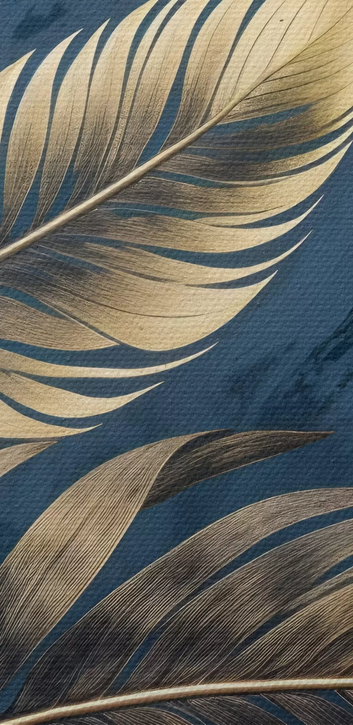 Obrázok Žlté a béžové abstraktné ozdobné pierka plávajúce na tmavomodrom textúrovanom pozadí Nr r42218