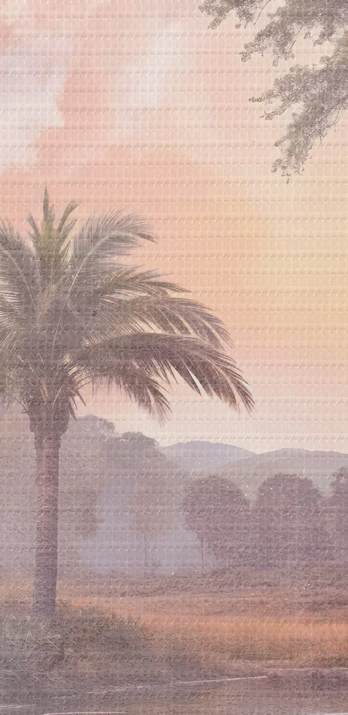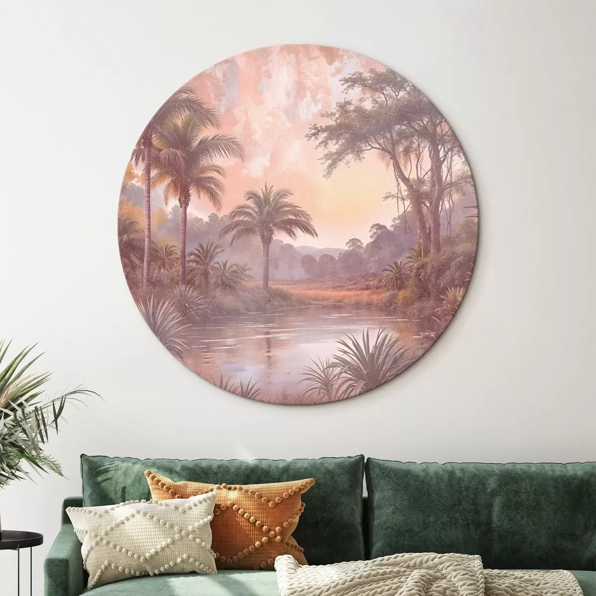 Obrázok Tropická krajina s pokojným jazerom obklopeným sviežimi palmami a inou zeleňou Nr r42219