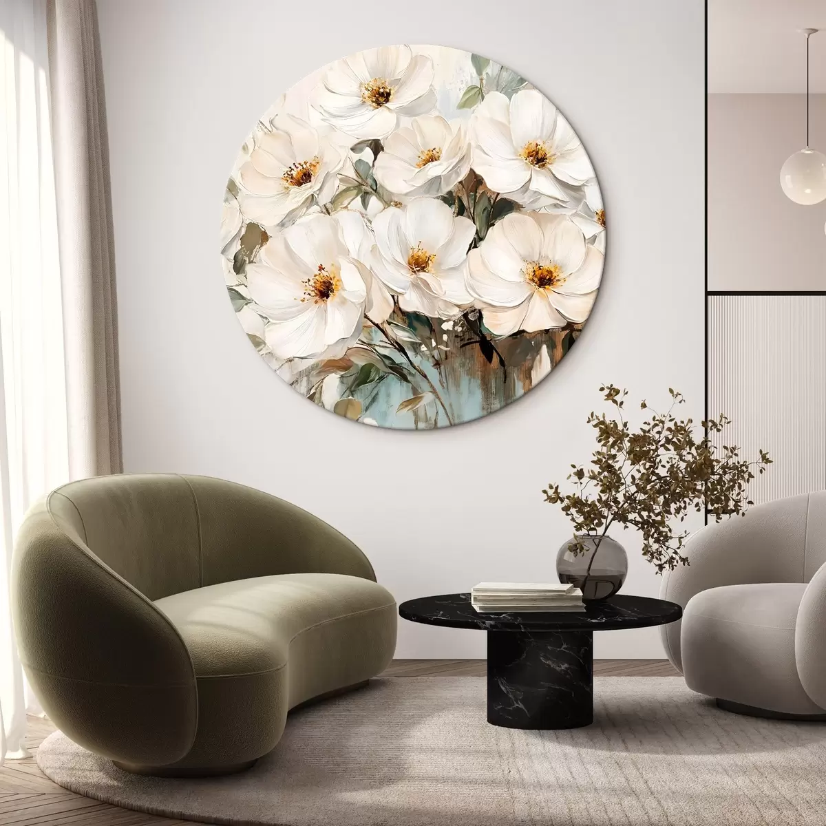 Obrázok Kytica veľkých bielych kvetov v štýle olejomaľby so žltými stredmi na svetlom pozadí Nr r42222