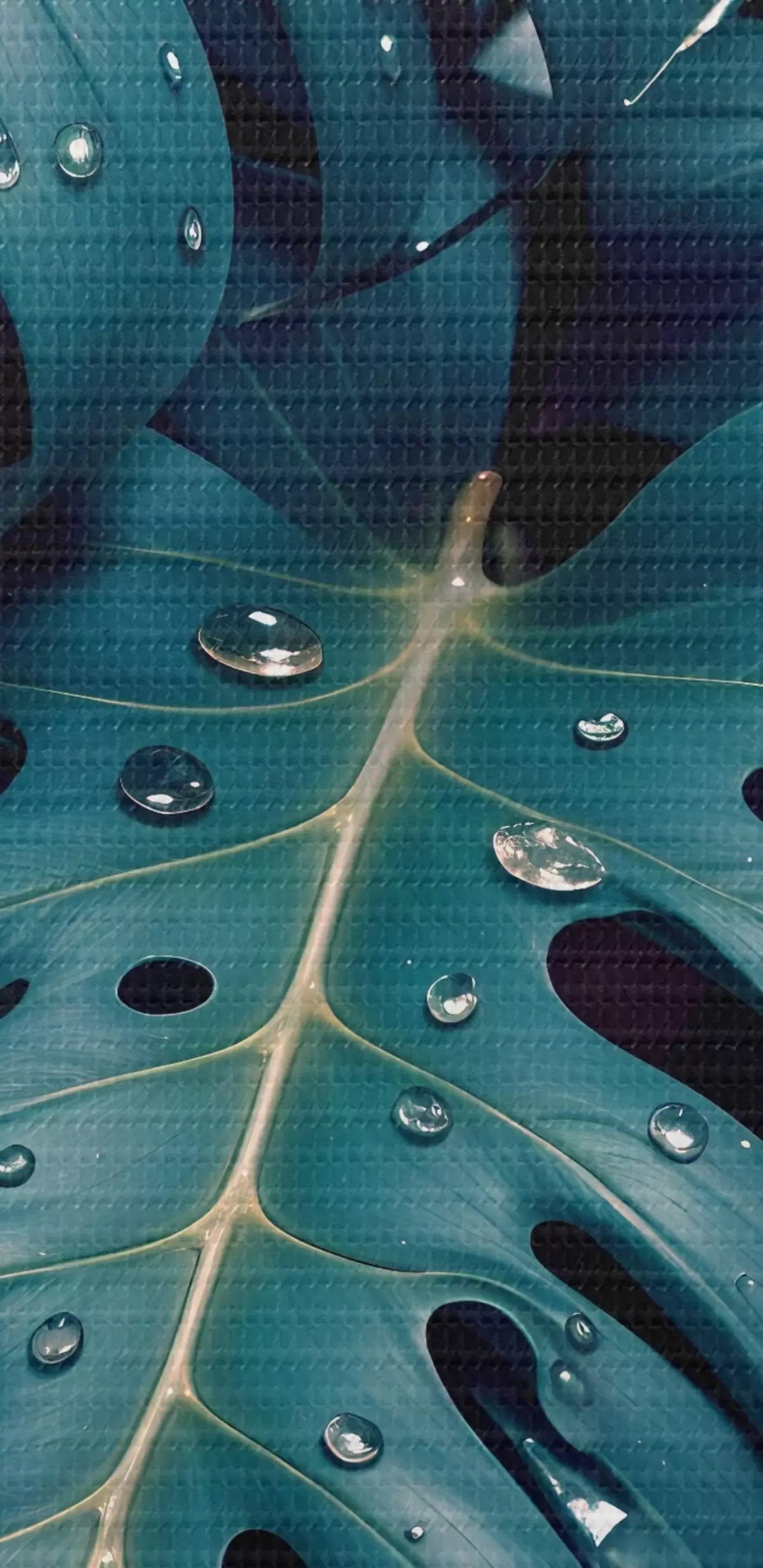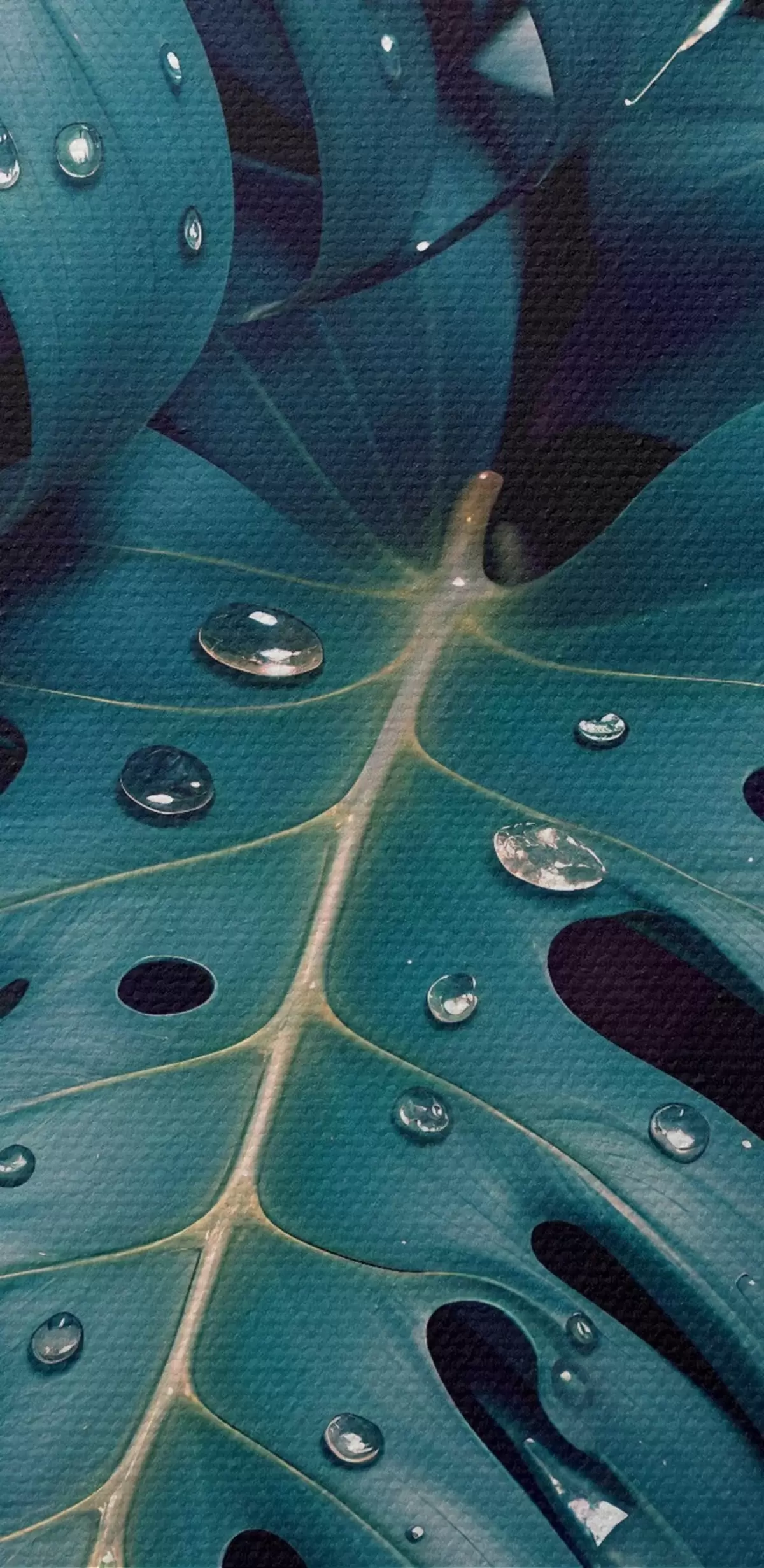 Obrázok Svieže listy tropickej monstery s kvapkami vody na tmavom pozadí, ktoré vytvára náladový a atmosférický výtlačok Nr r42233