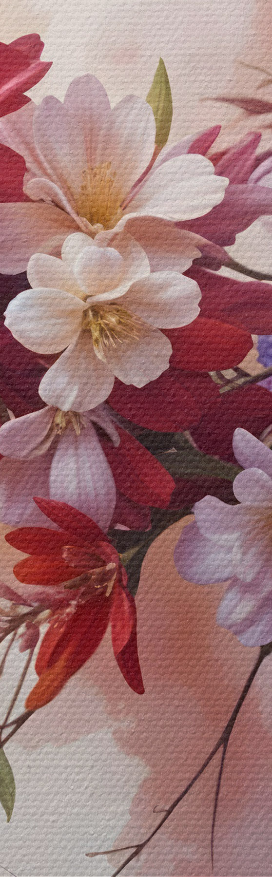 Na objednanie sú k dispozícii tri typy materiálu: Economic Canvas - hustý a odolný materiál na digitálnu tlač, identický s maliarskym plátnom, vodoodolný povrch, realistická reprodukcia detailov, stredne zrnitý materiál. Premium Canvas - štruktúra pripomína maliarske plátno (prepletené drobné vlákna). Mäkká, detailná reprodukcia obrazu na matnom povrchu. Eco-Premium - vysokokvalitná tkanina zo 100 % bavlny. Vďaka prírodným bavlneným vláknam je materiál trvanlivý a odolný voči opotrebovaniu. Vynikajúca reprodukcia farieb a detailov.