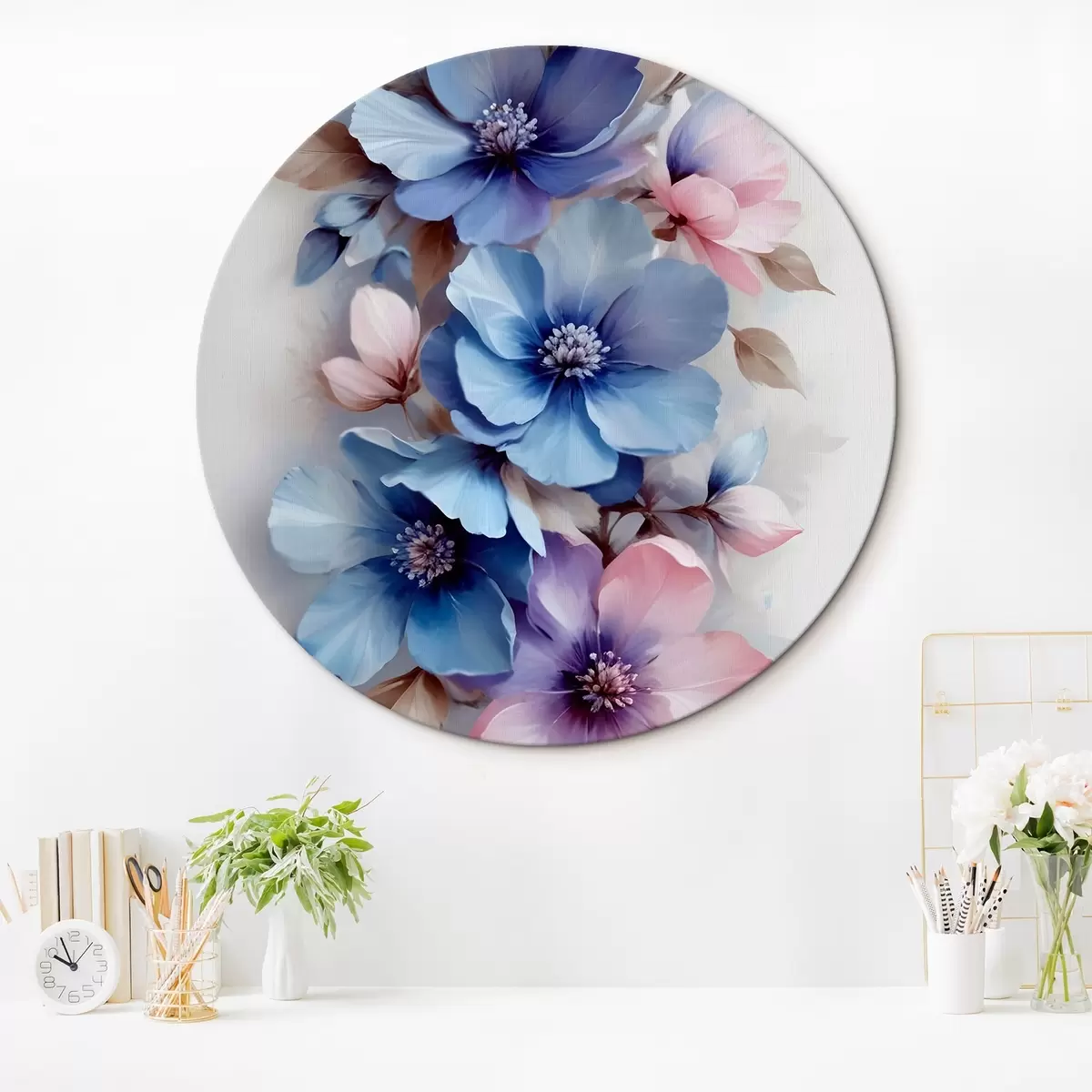 Obrázok Jemné modré a ružové kvety s mäkkými okvetnými lístkami a stredmi, usporiadané v krásnej kvetinovej potlači na svetlom pozadí Nr r42241