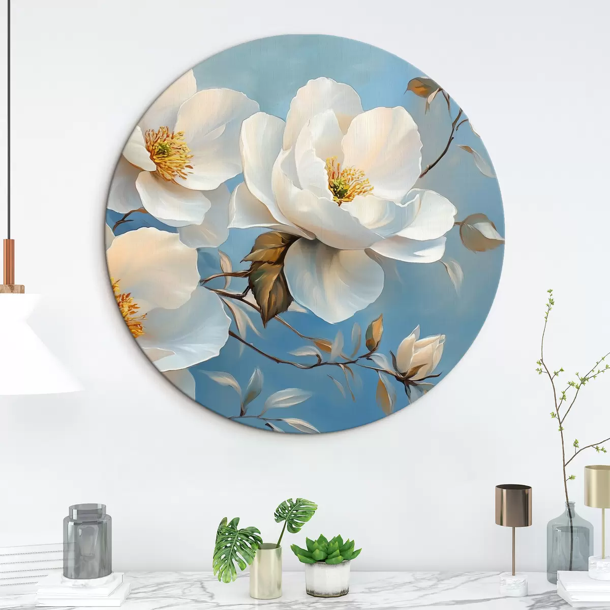 Obrázok Veľké biele kvety na modrom pozadí Nr r42321