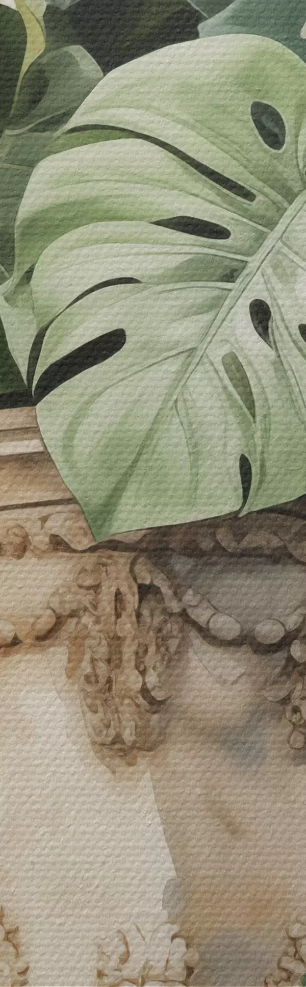 Obrázok Listy tropickej monstery na stĺpci imitujúcom akvarel Nr r42351