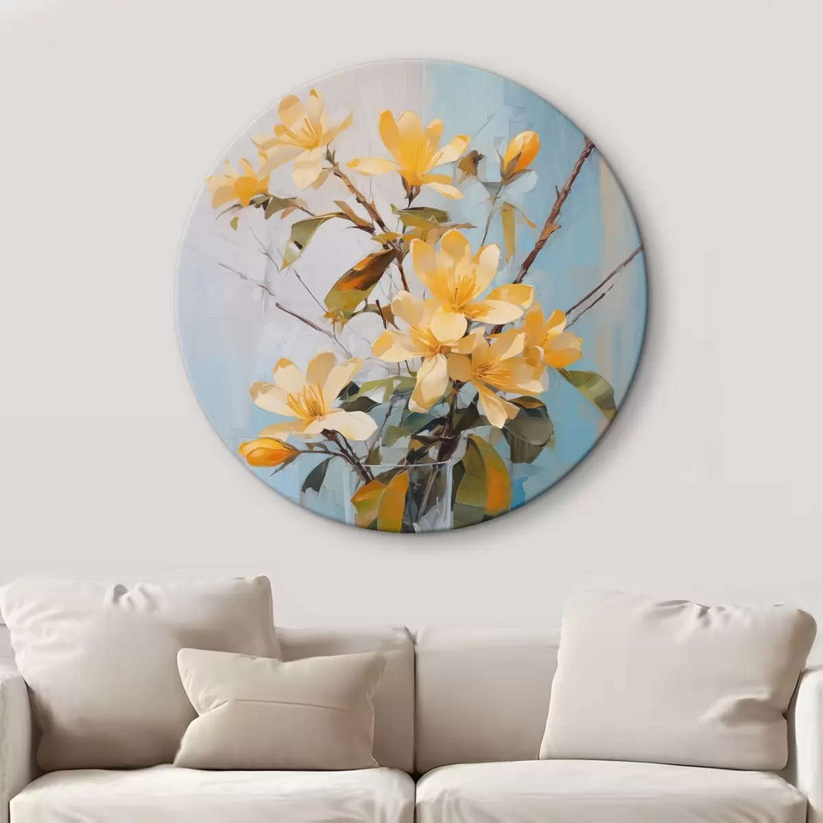 Obrázok Vetvy so žltými kvetmi vo váze imitujúcej maľbu Nr r42358