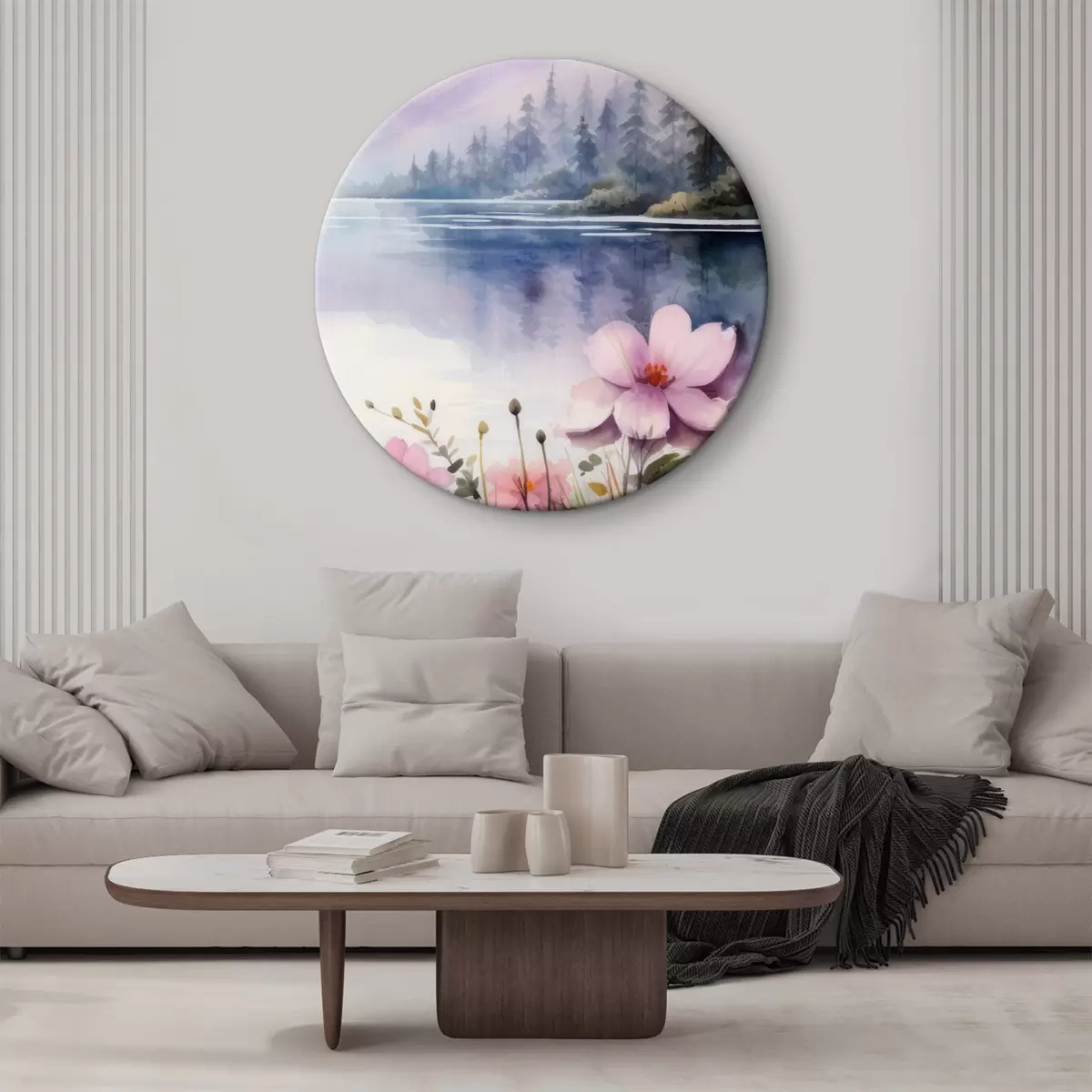 Obrázok Ružové kvety na pozadí jazera v horách Nr r42393