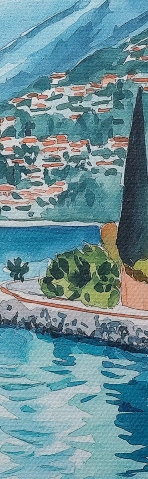 Obrázok Jazero Como, Taliansko, akvarel, pizza, koktaily, staré mesto, hory Nr r42437