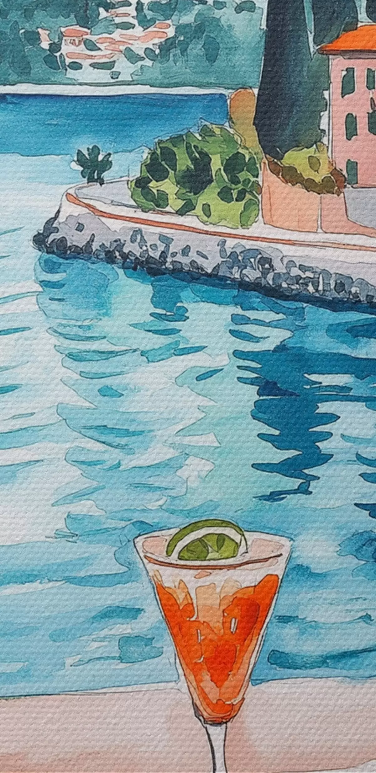 Obrázok Jazero Como, Taliansko, akvarel, pizza, koktaily, staré mesto, hory Nr r42437