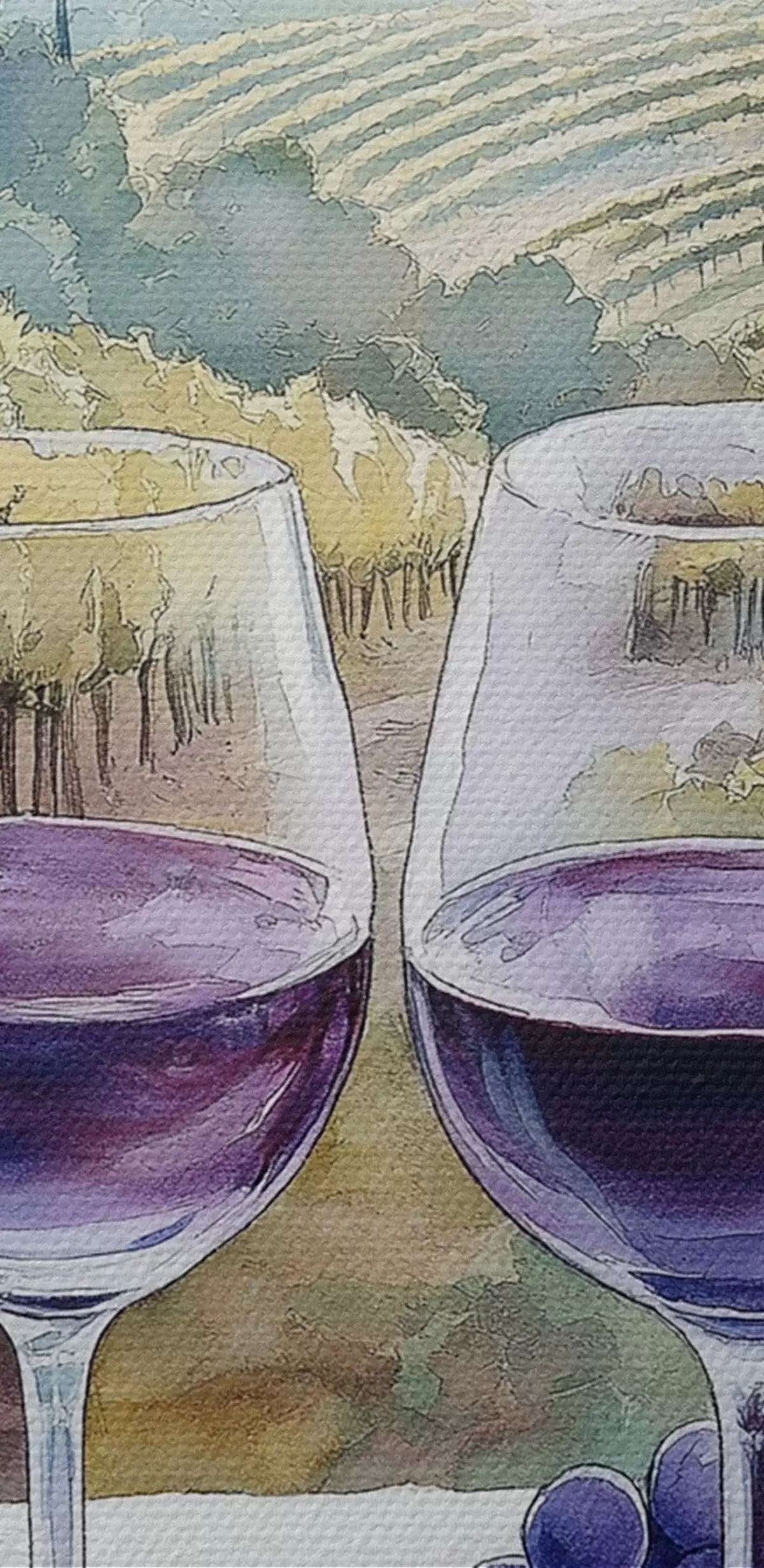 Obrázok Akvarel v štýle Toskánsko krajiny, vínne dvory, hrozno Nr r42440