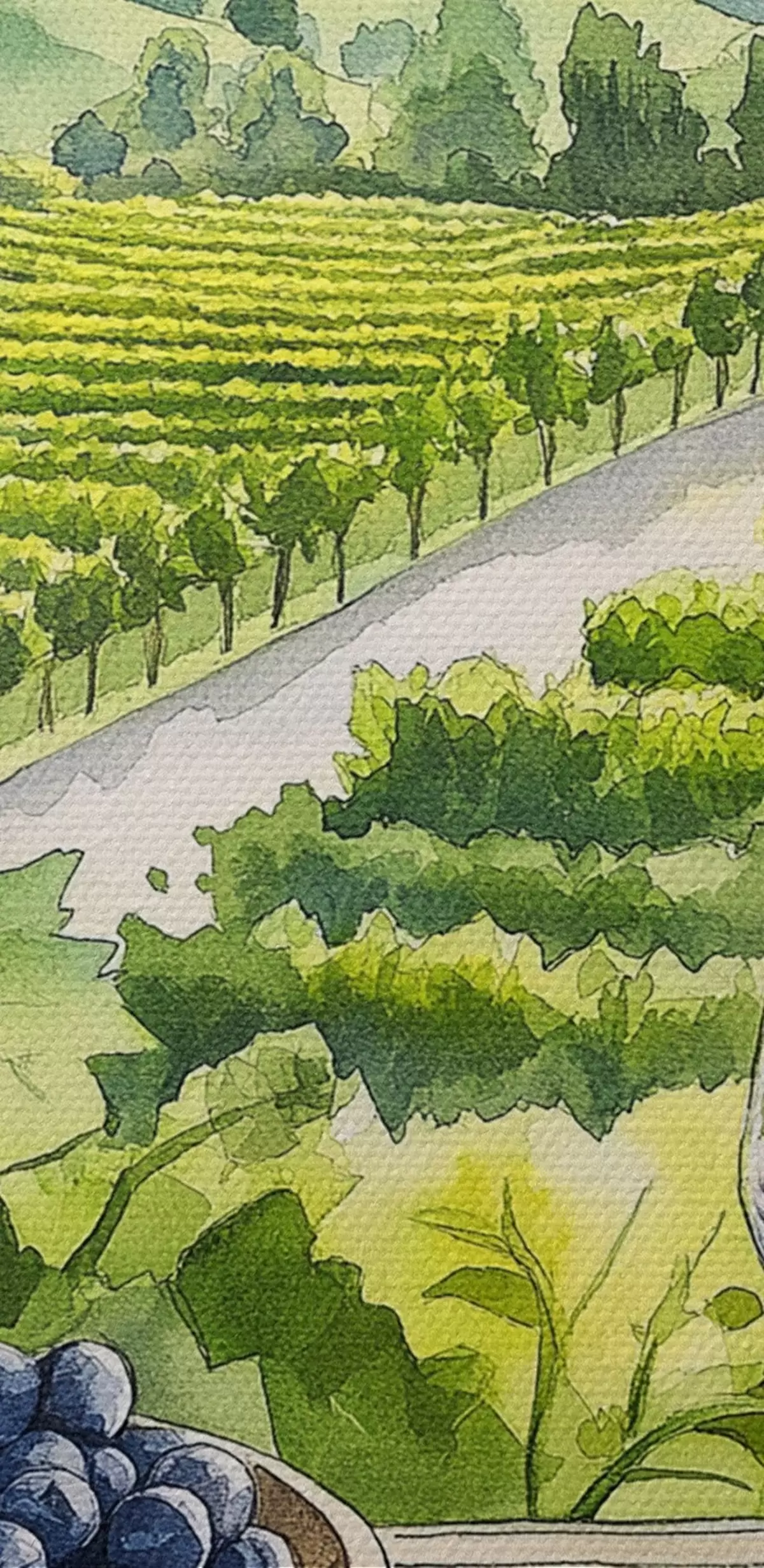 Obrázok Gpape dvory, akvarelový štýl krajiny, poháre na víno Nr r42444