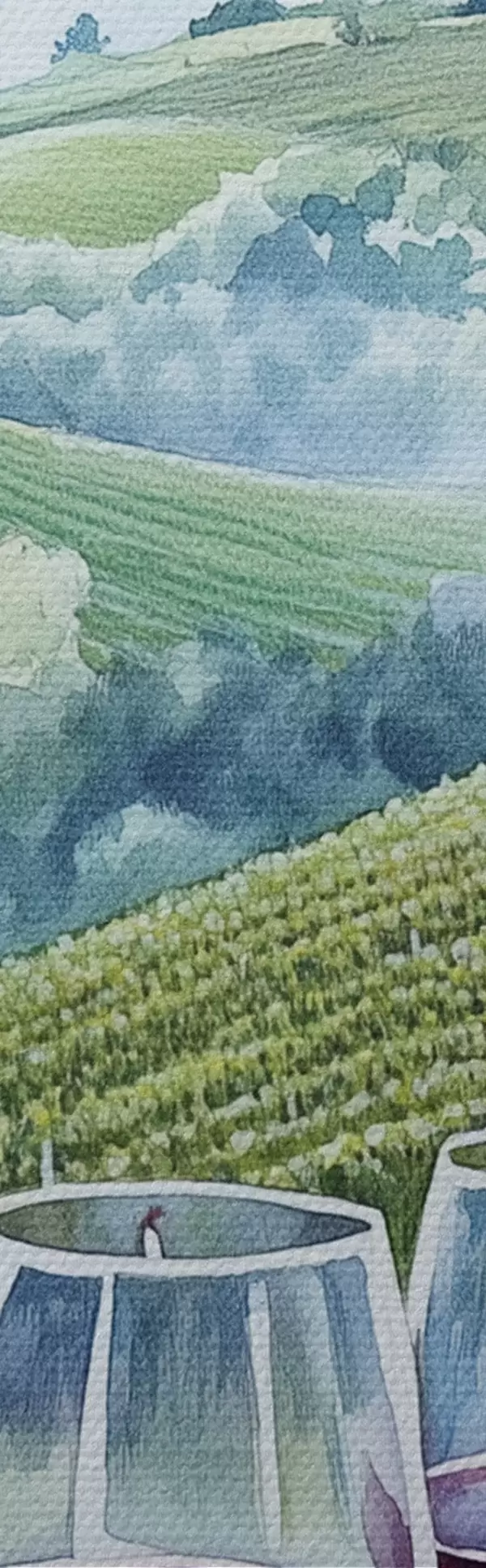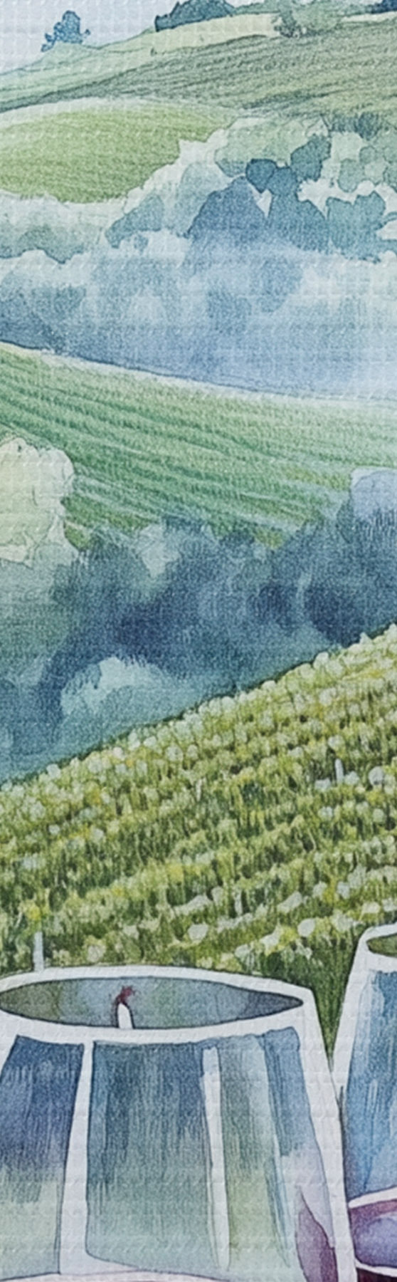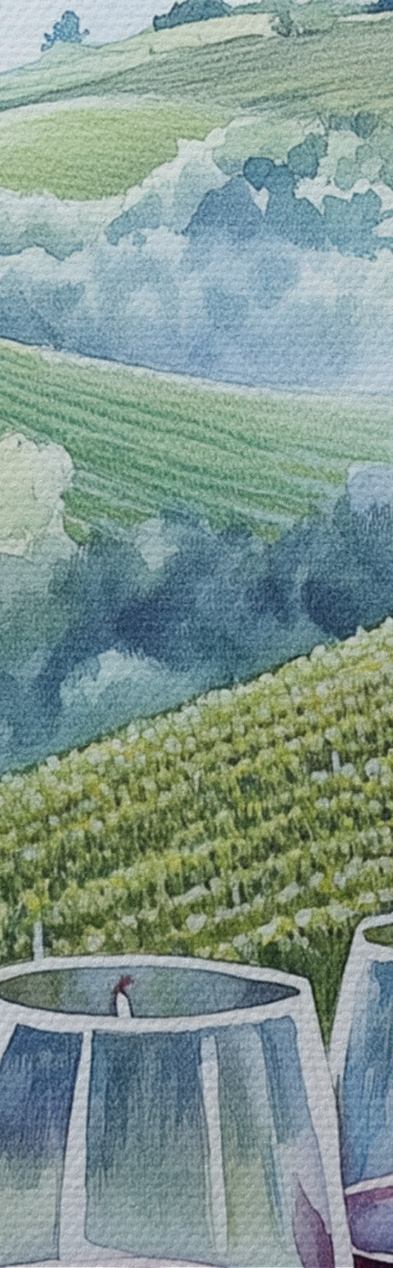 Obrázok Toskánska krajina, hroznové dvory, poháre na víno, akvarel Nr r42445