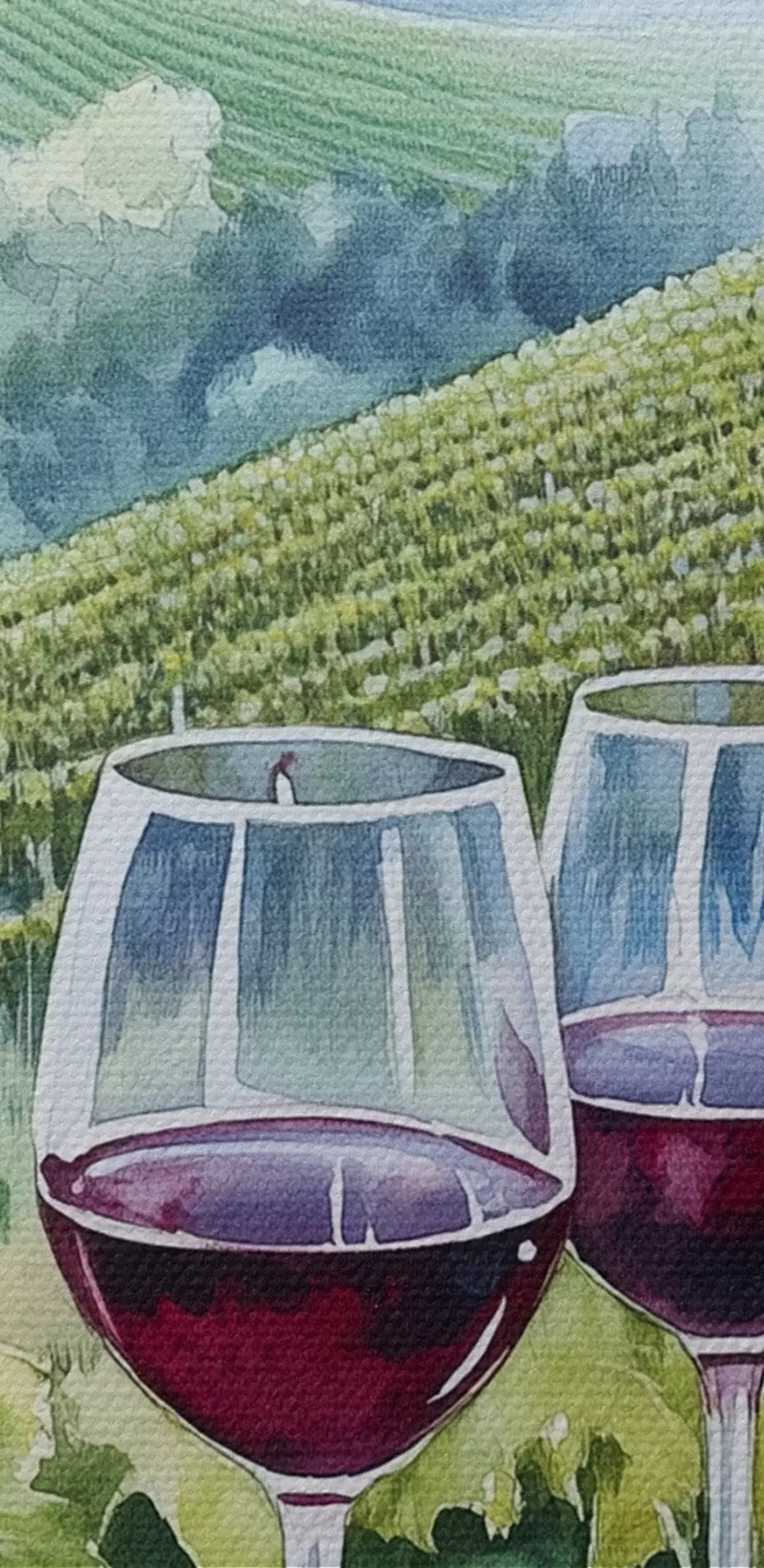 Obrázok Toskánska krajina, hroznové dvory, poháre na víno, akvarel Nr r42445