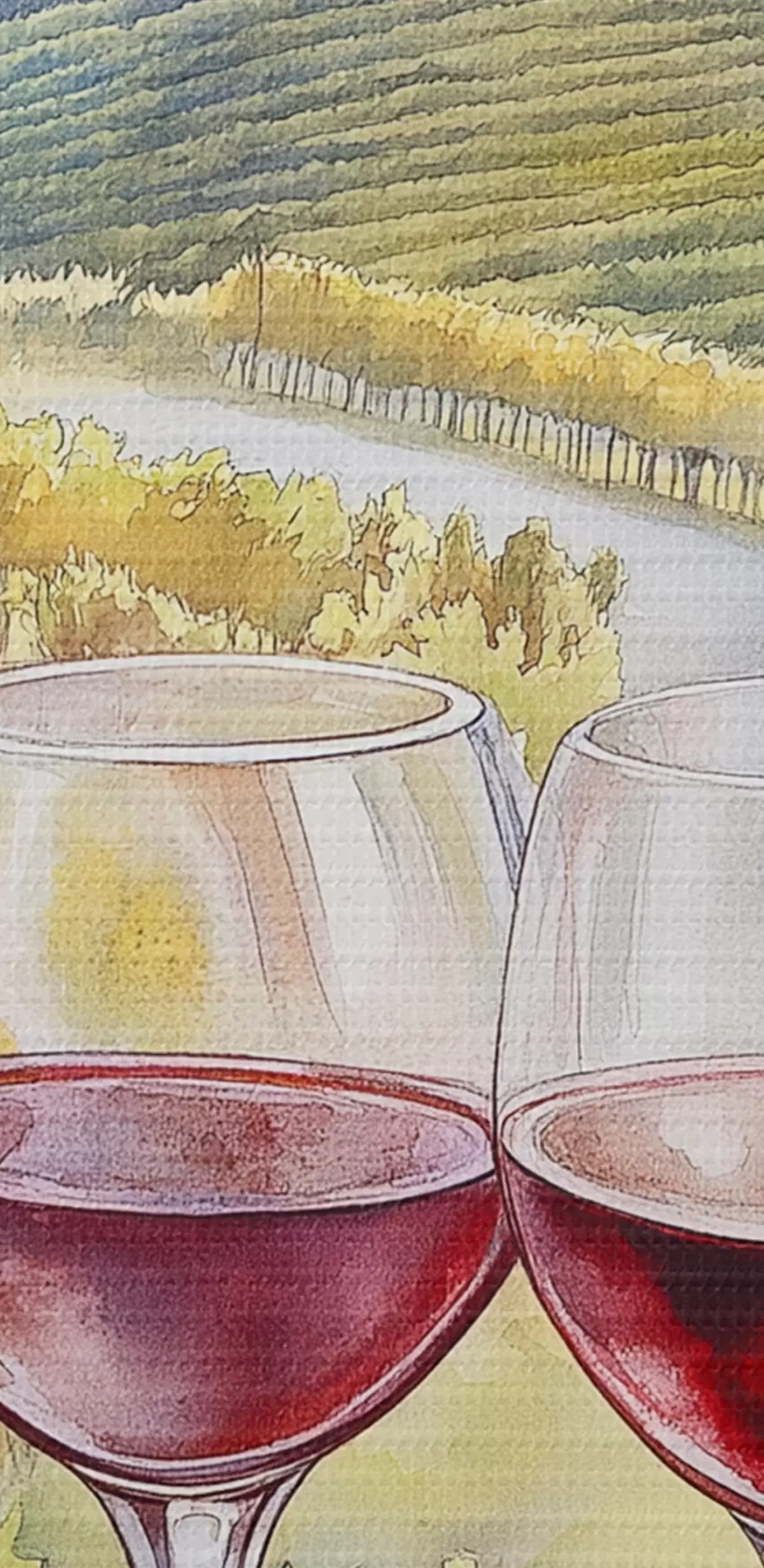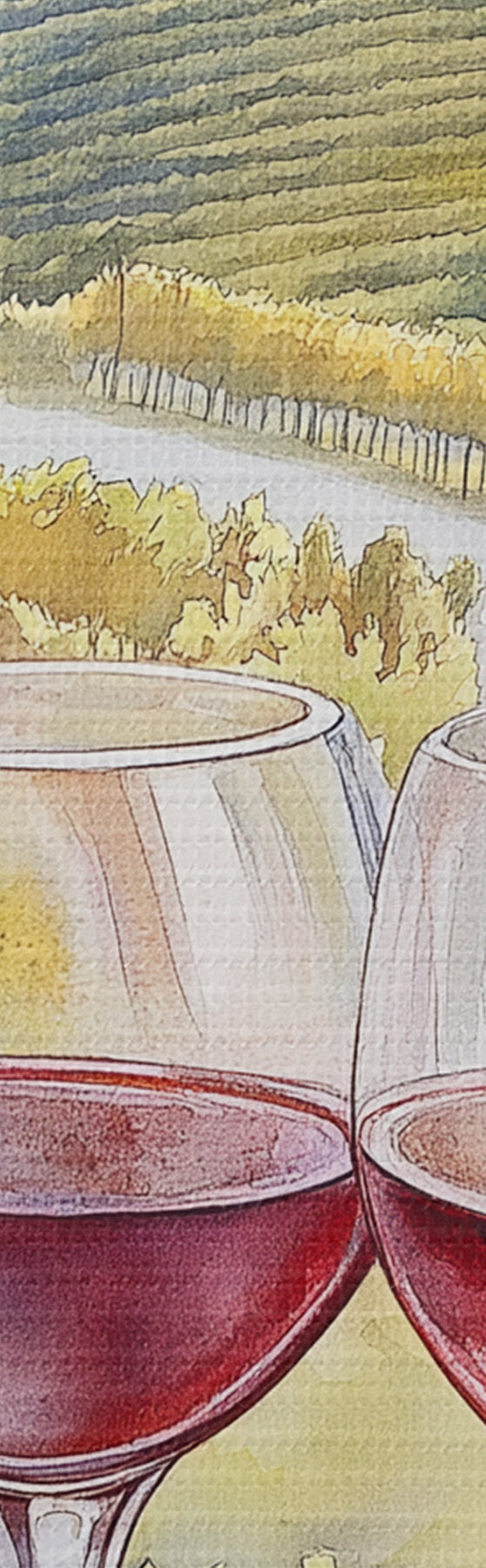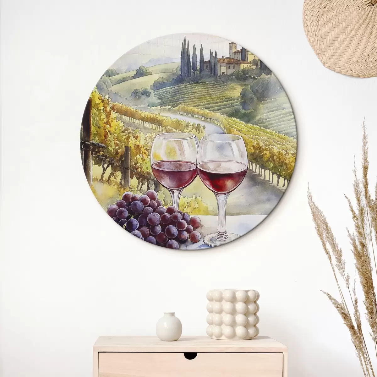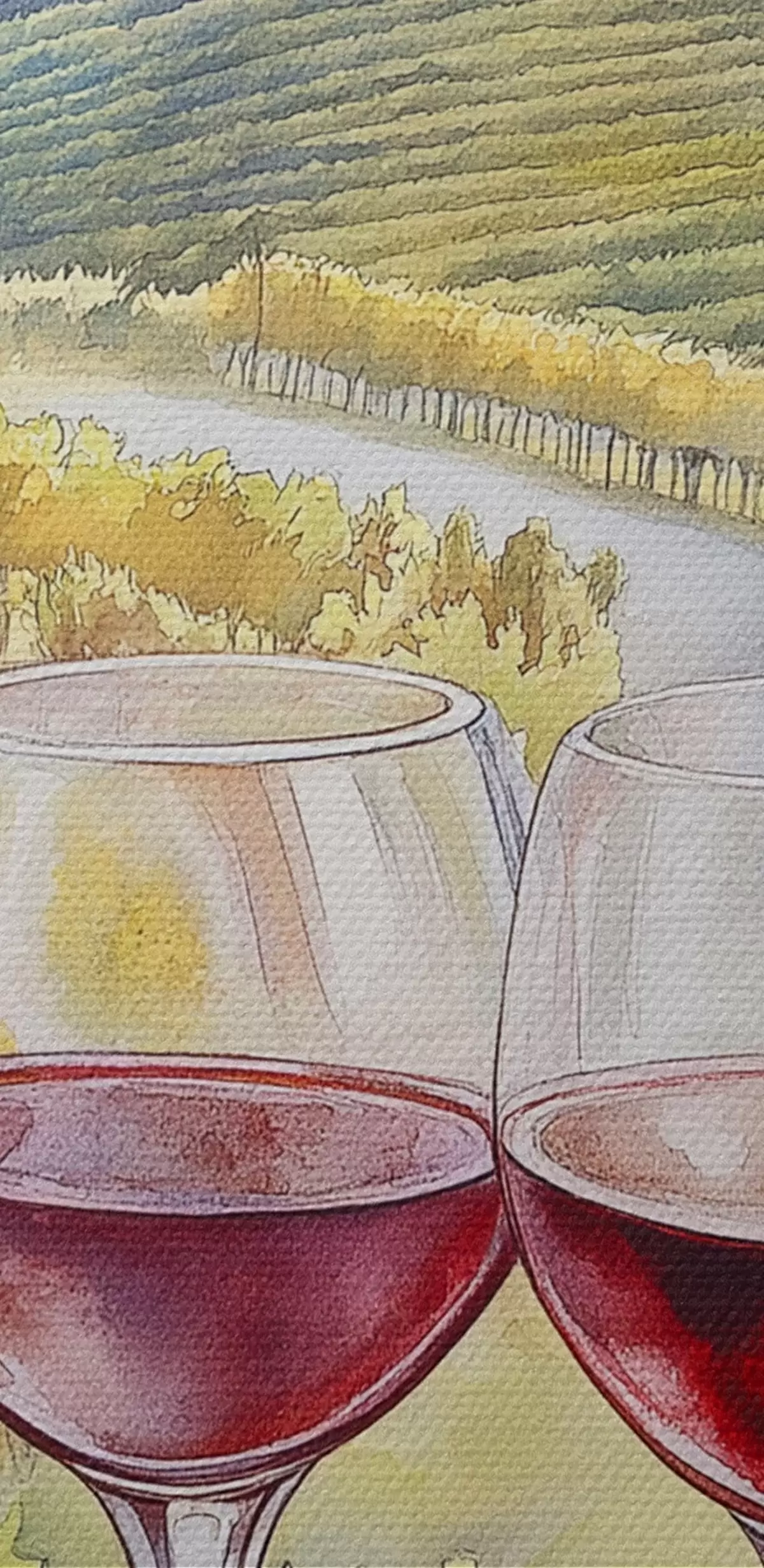 Obrázok Západ slnka v Toskánsku, vinárstvo, stará architektúra, akvarel, Taliansko Nr r42446