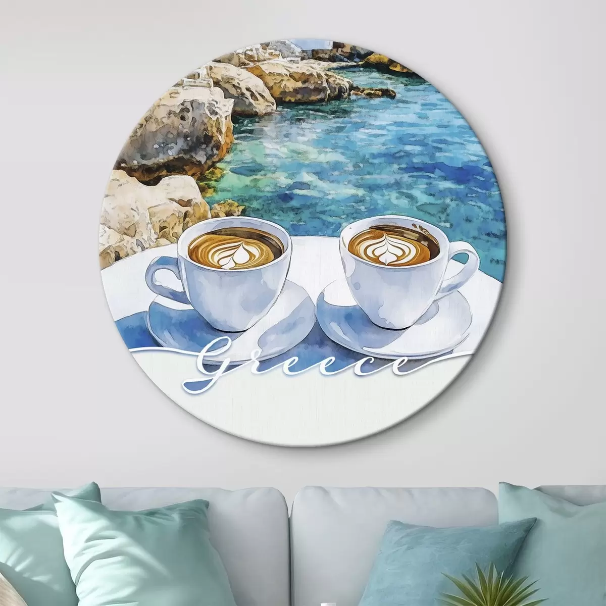 Obrázok Grécko estetika, šálky kávy, modré more, staré mesto, cestovanie Nr r42447
