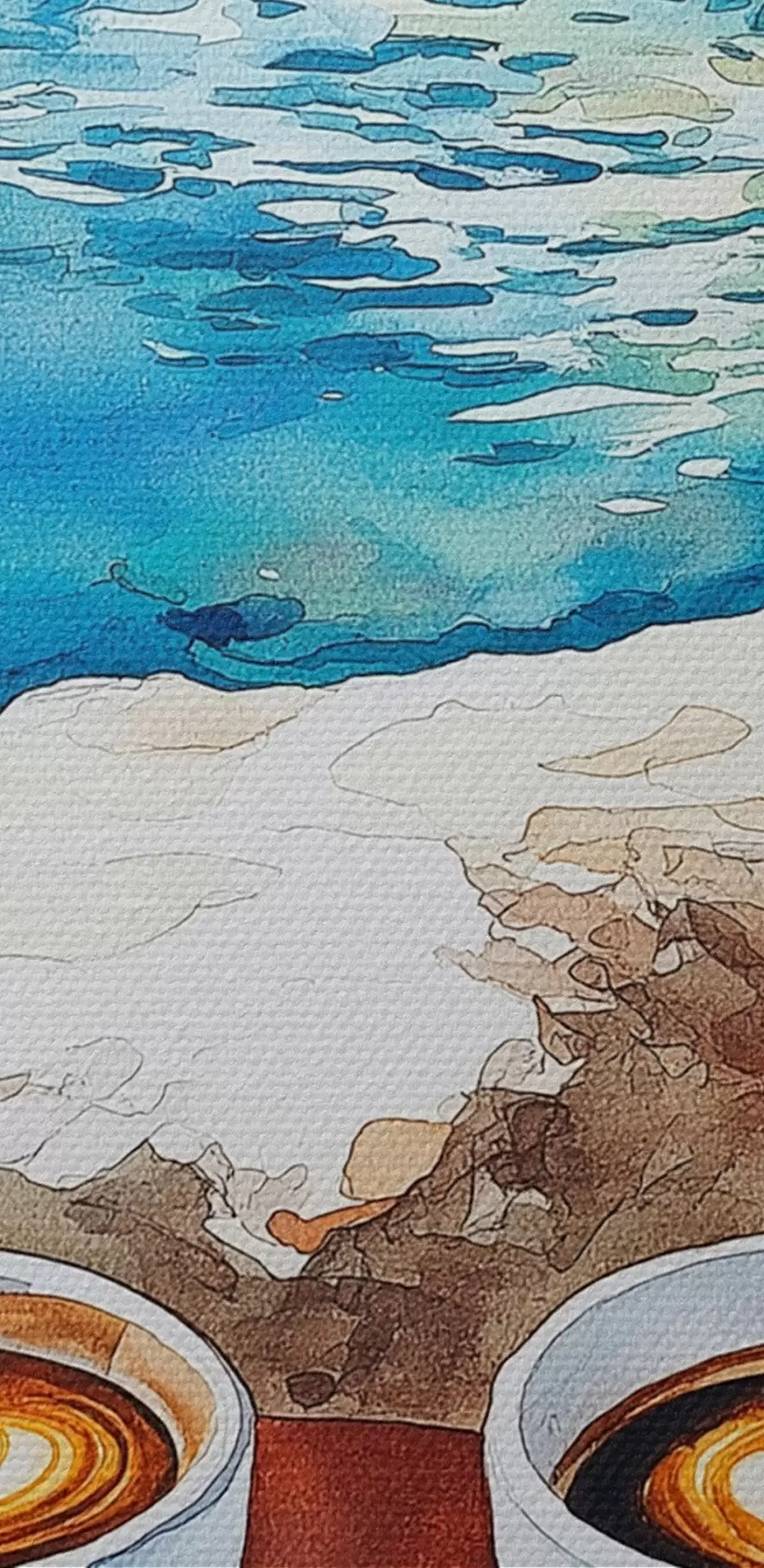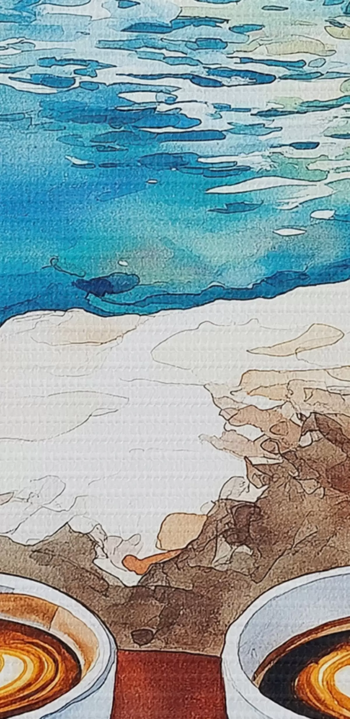 Obrázok Akvarel na morskej strane so šálkami kávy, leto Nr r42449