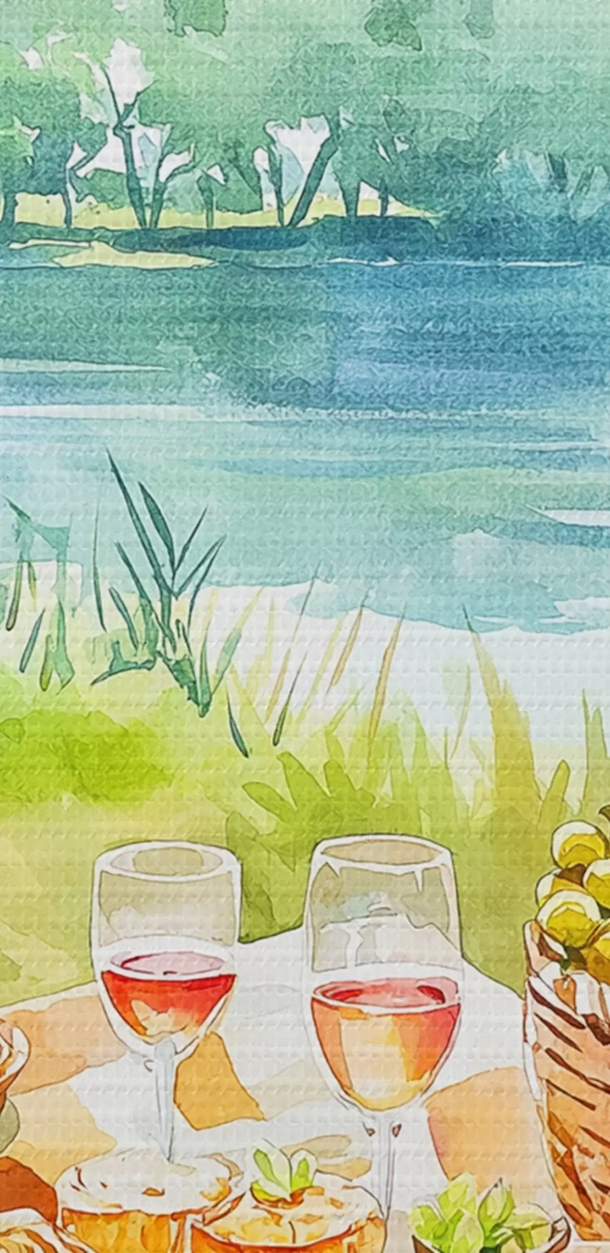 Obrázok Estetika pikniku, letná príroda, jazero, romantické, akvarel Nr r42450