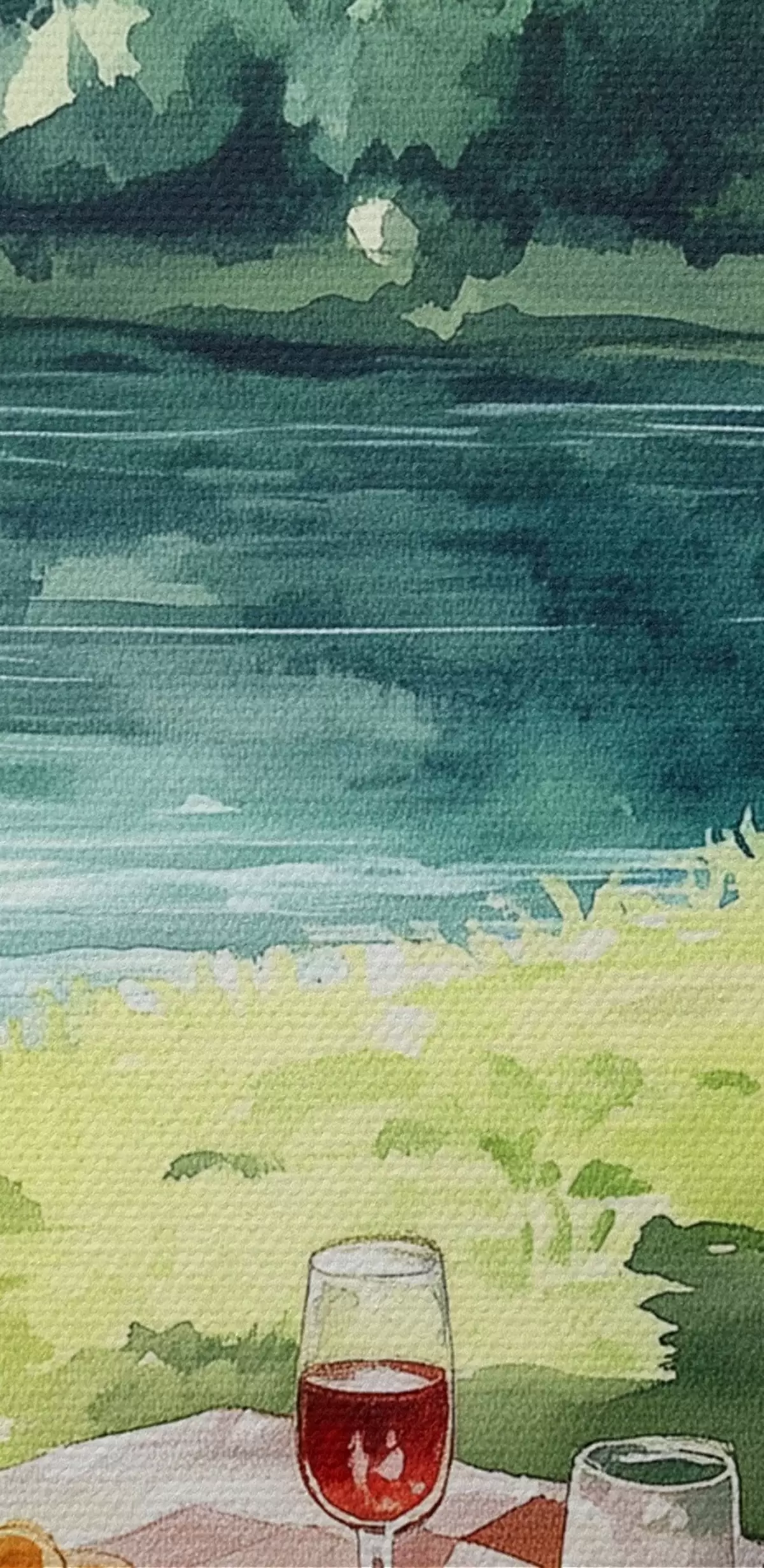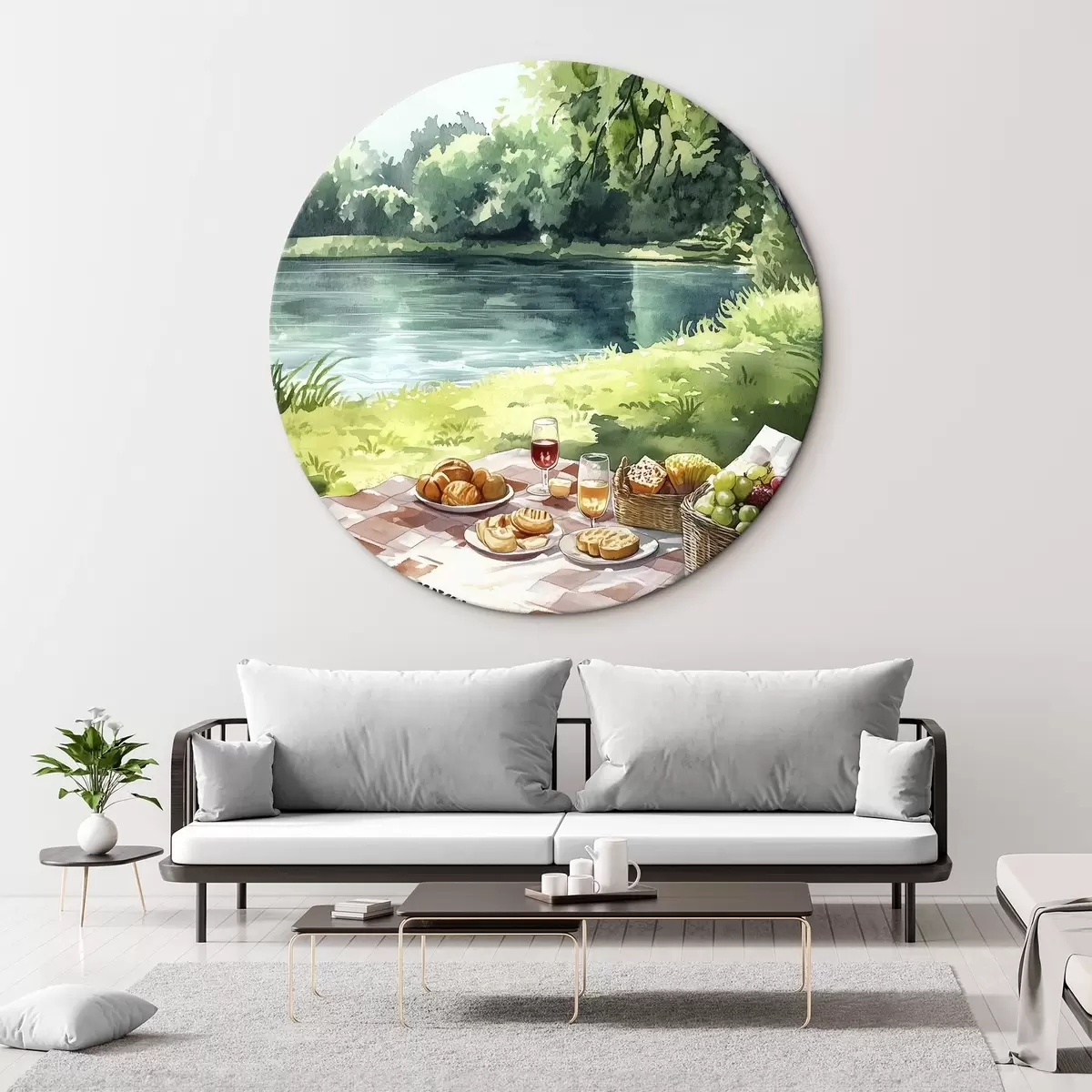 Obrázok Krásny romantický piknik pri letnom jazere, ovocie, zeleň Nr r42451