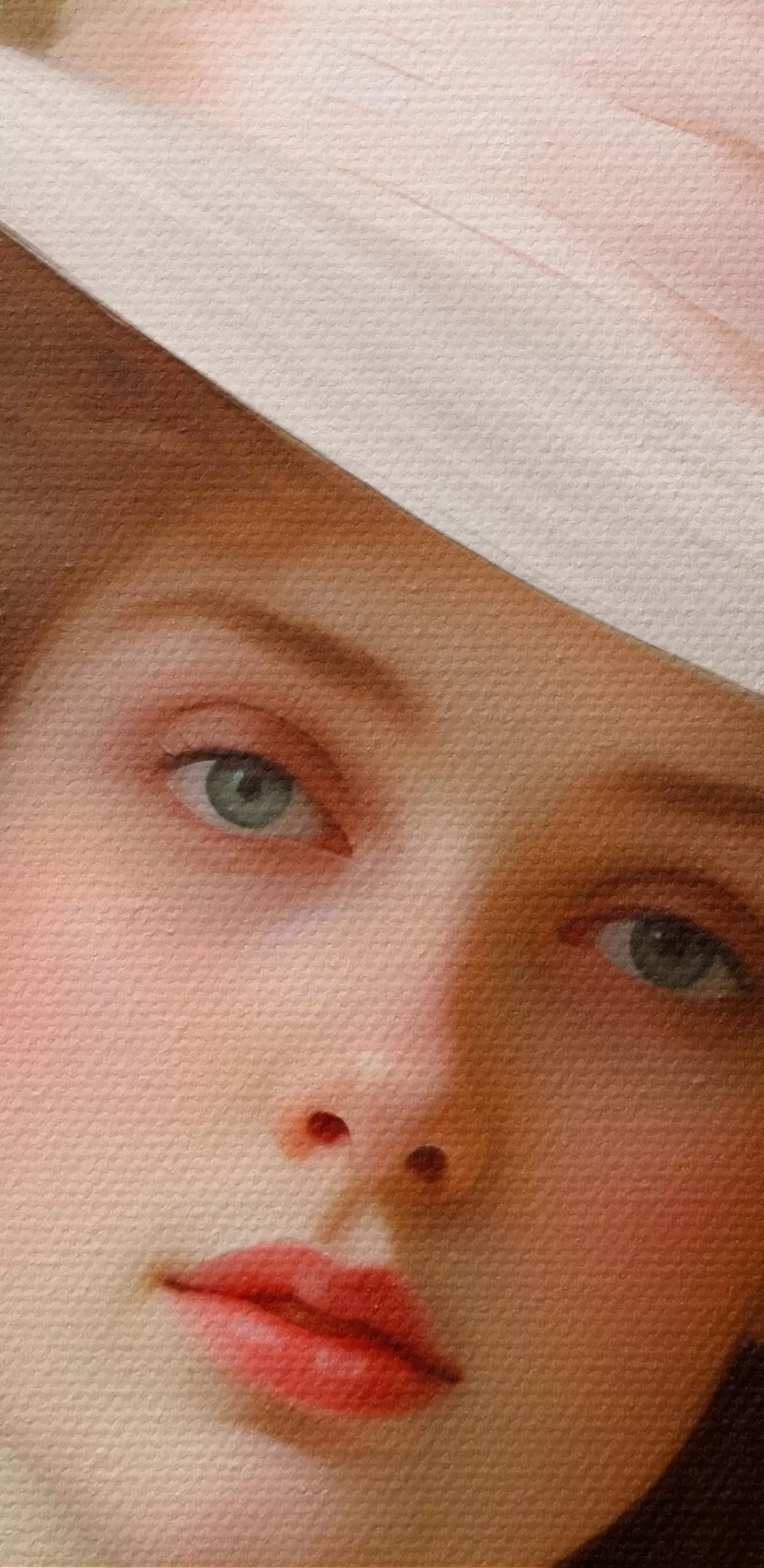 Obrázok Portrét mladej ženy v jemných ružových šatách a klobúku zdobenom kvetmi s romantickým a rafinovaným výrazom. Nr r42581