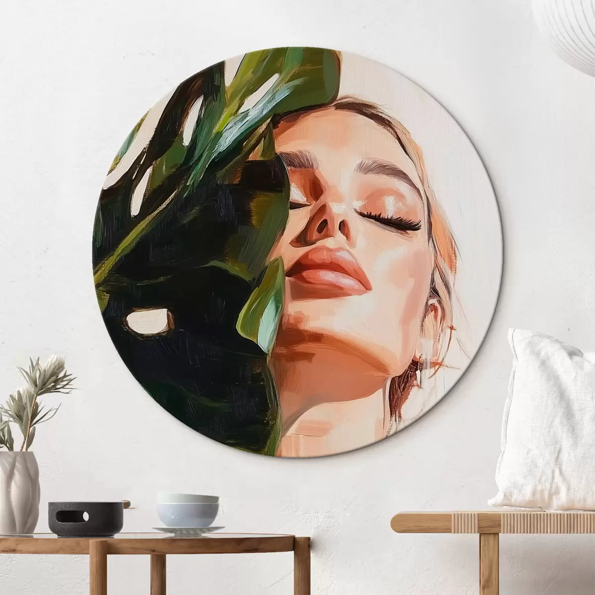 Obrázok Portrét ženy s listom monstery s imitáciou ťahov štetcom Nr r42597