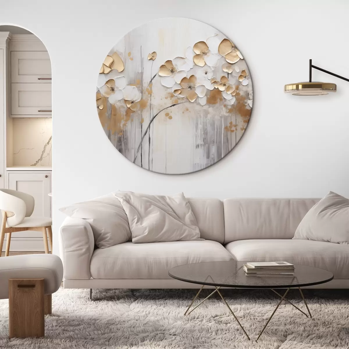 Obrázok Kvety s textúrovanými okvetnými lístkami na jemnom, tlmenom pozadí s abstraktnými farebnými škvrnami a vertikálnymi líniami Nr r42713