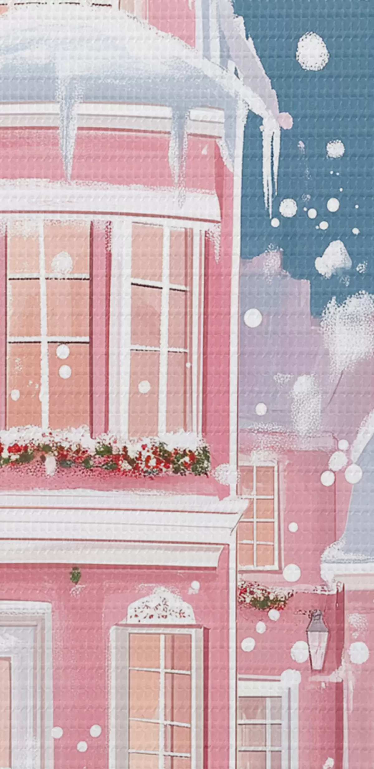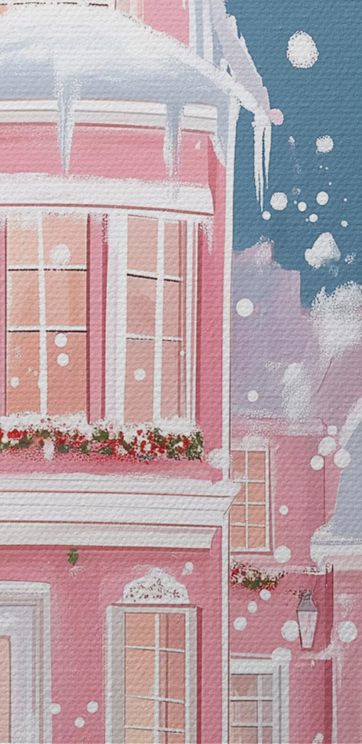 Obrázok Zimné mesto s ružovými domami, vianočnými stromčekmi, snehovými vločkami Nr r42792