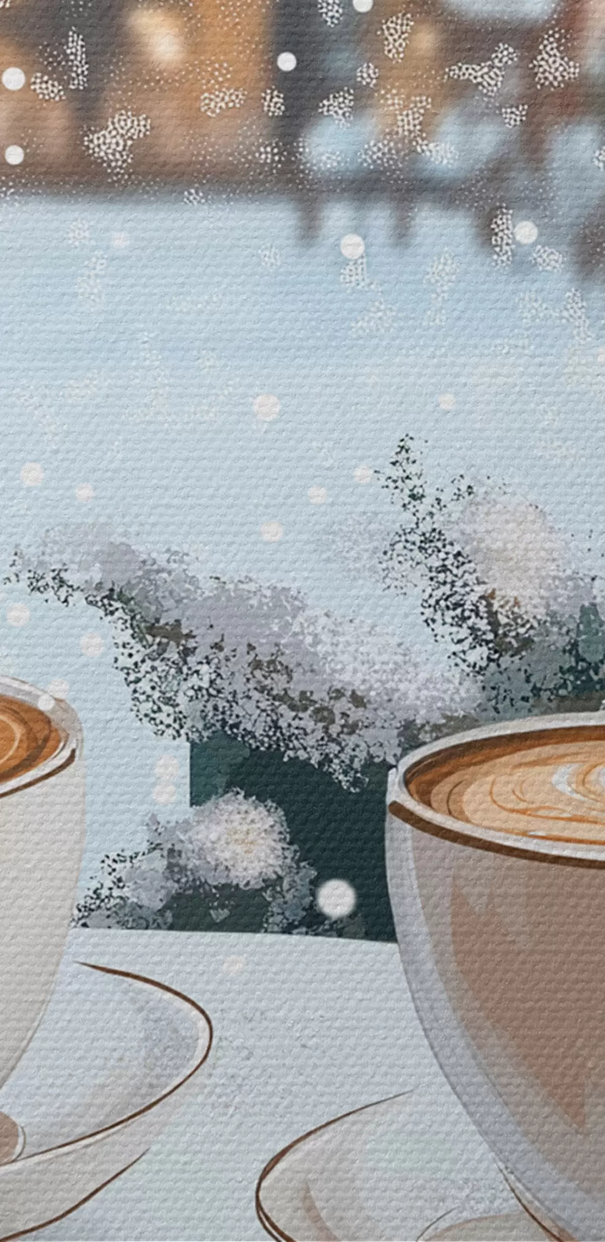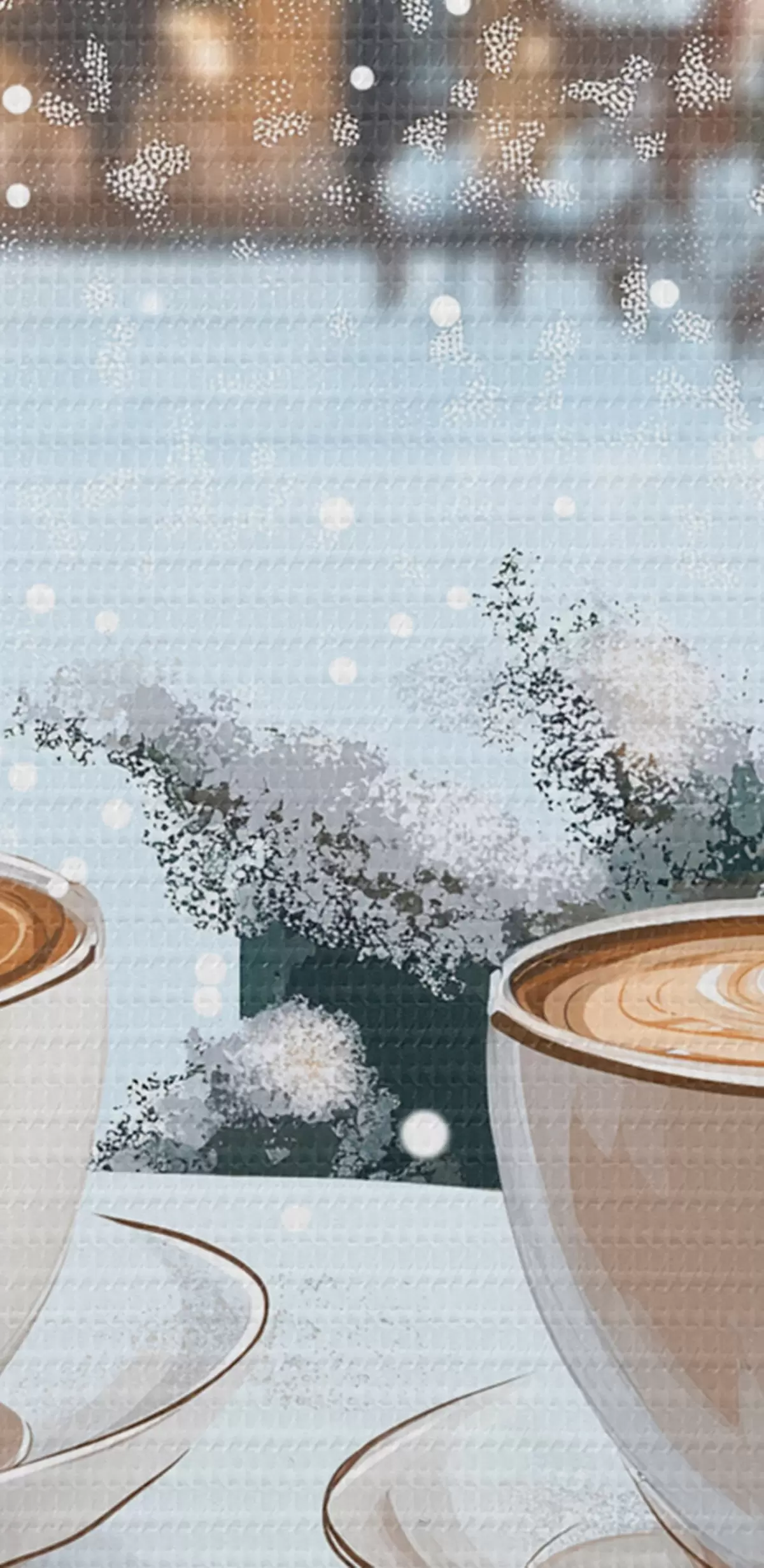 Obrázok Šálky kávy v útulnej kaviarni, zimná estetika, boho štýl Nr r42797