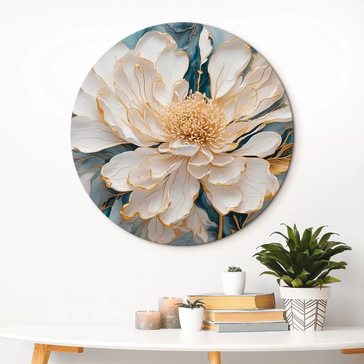 Obrázok Biely kvet so zlatými obrysmi na modro-bielom pozadí Nr r42923