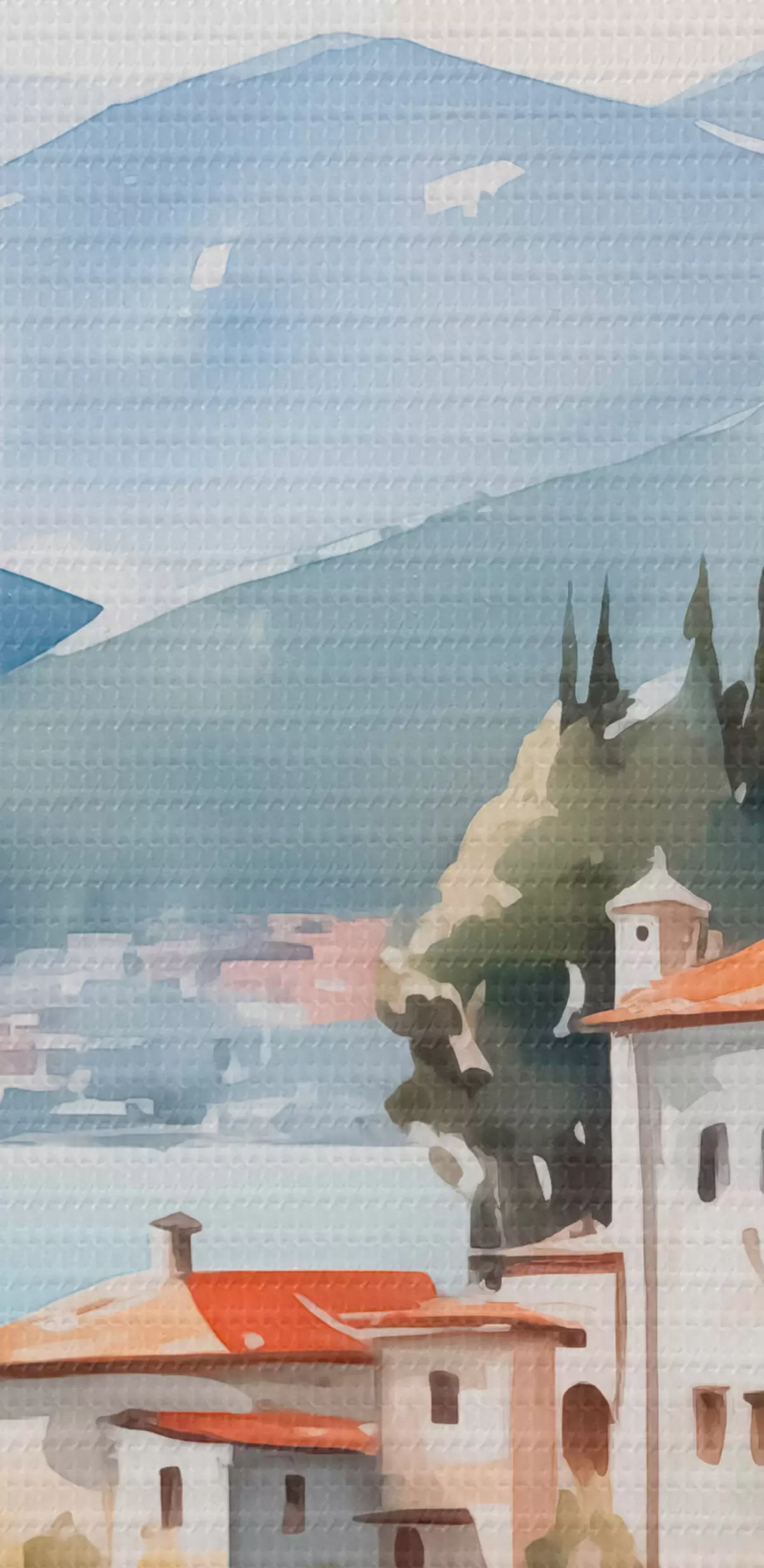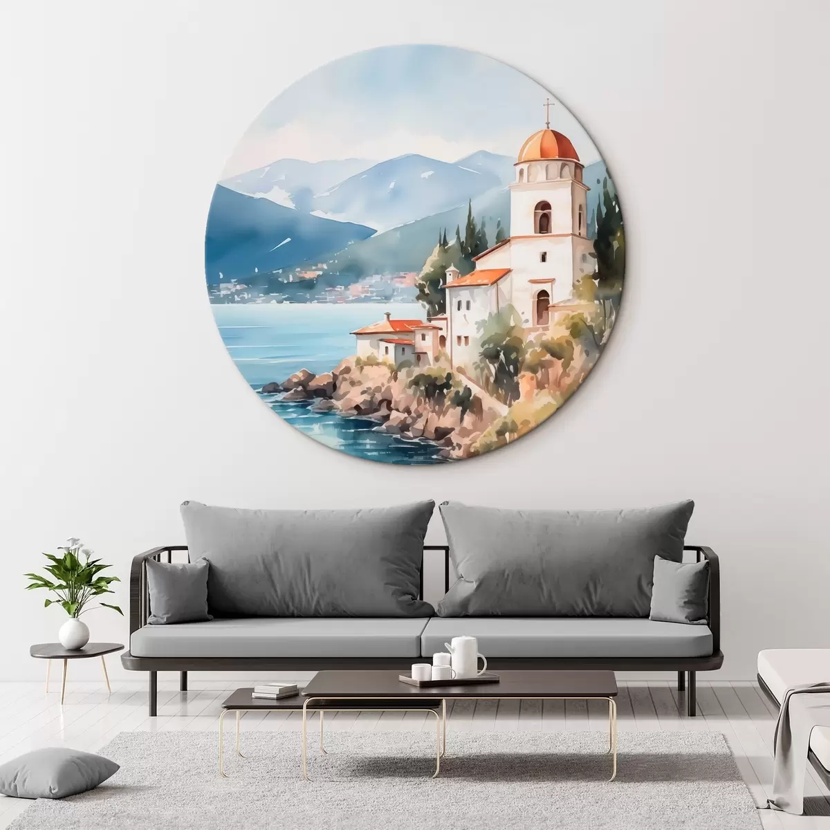 Obrázok Kostol pri mori s horami v pozadí Nr r42962