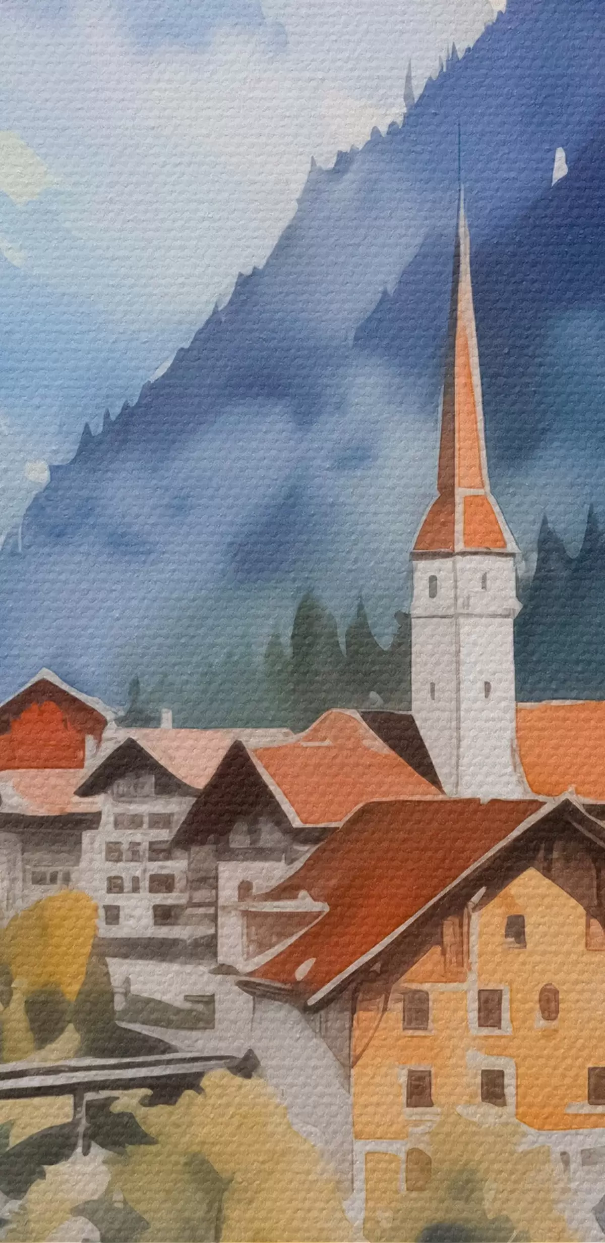Obrázok Dedina v blízkosti hôr imitácia akvarelu Nr r42964
