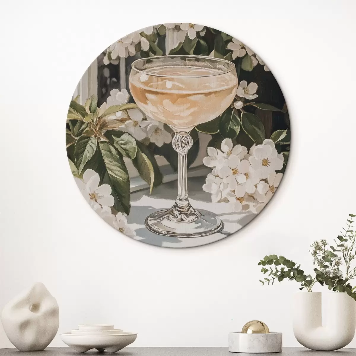 Obrázok Pohár šampanského, vinobranie, akvarelový štýl, biele kvety Nr r43051