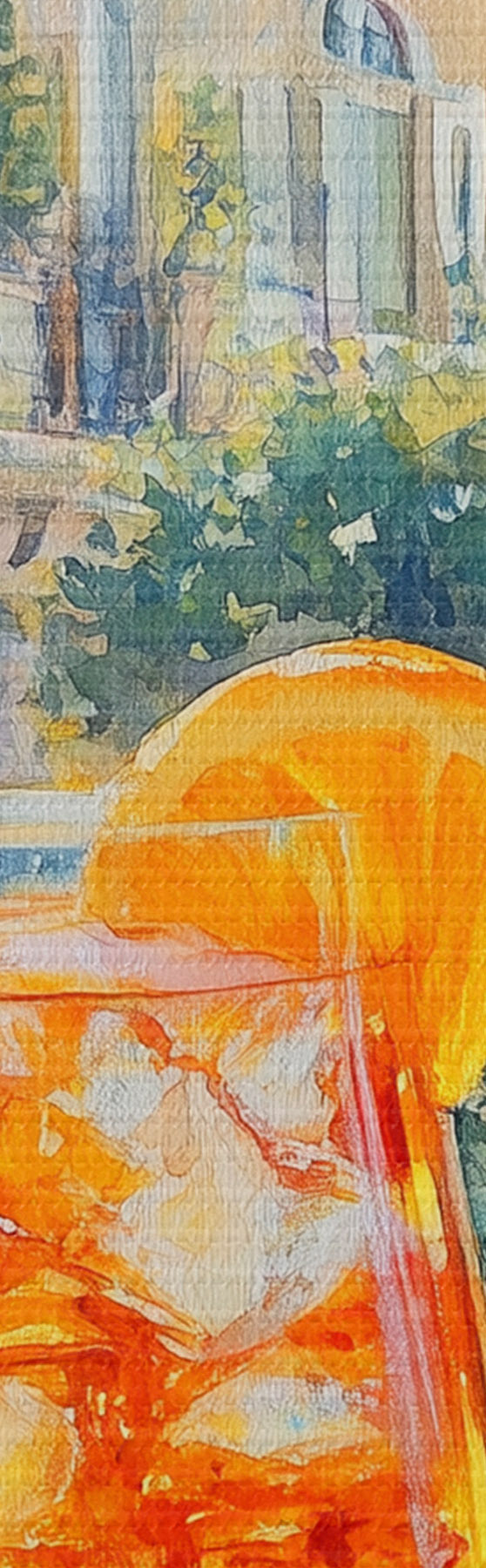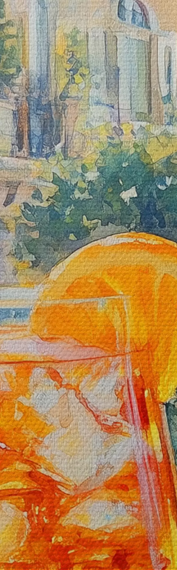 Obrázok Koktail s pomarančmi, akvarel, Taliansko, Aperol Spritz, architektúra, letná záhrada Nr r43061