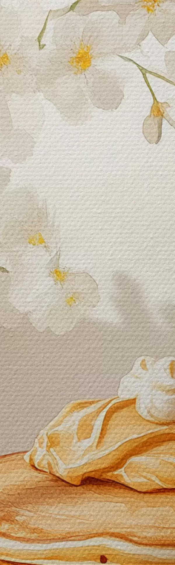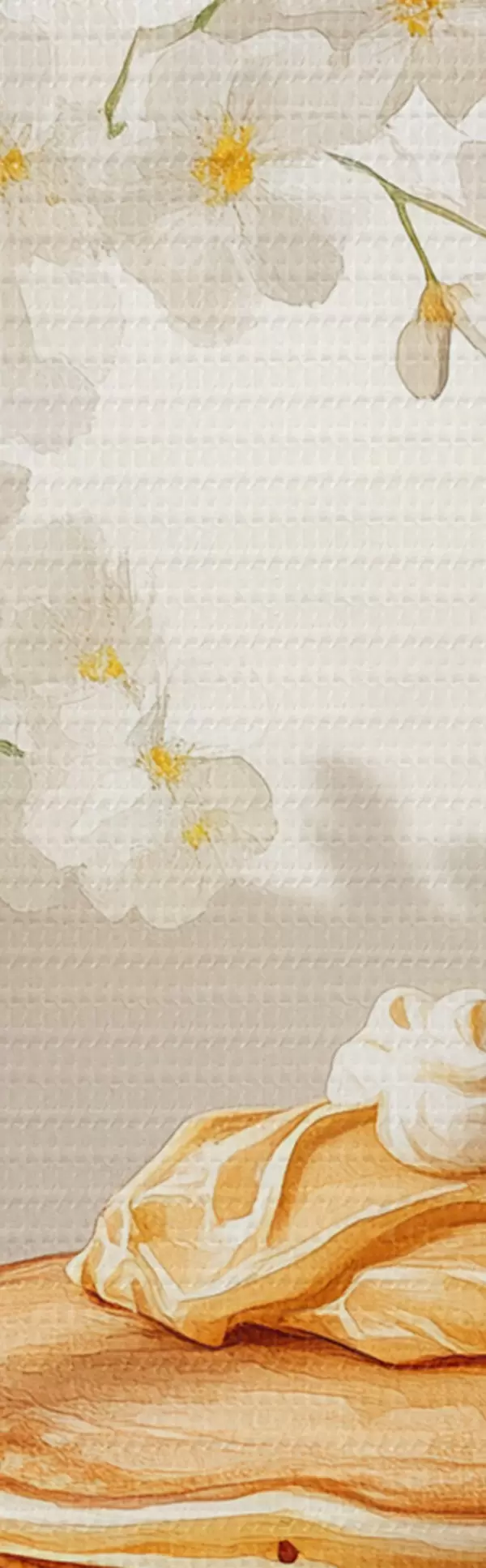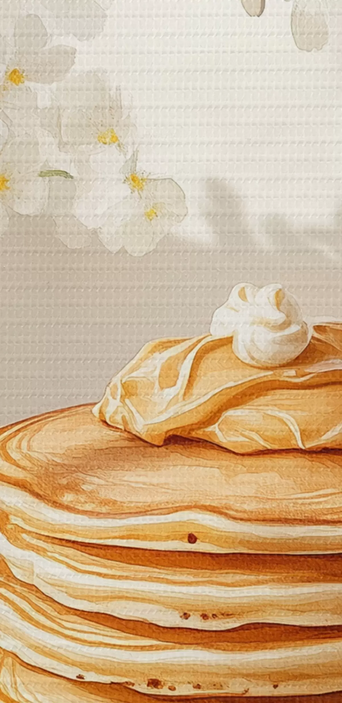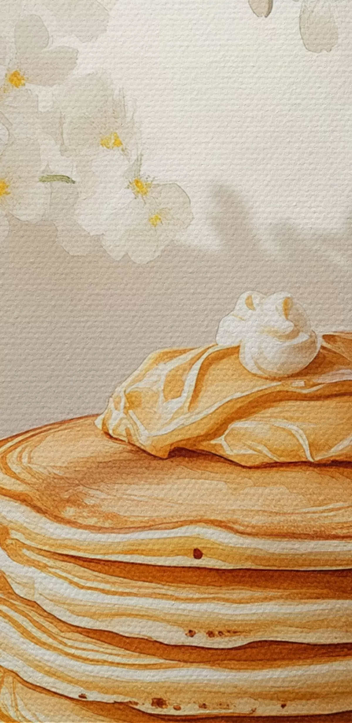 Obrázok Lahodné palacinky s arašidovým maslom, akvarelový štýl, váza s bielymi kvetmi Nr r43063