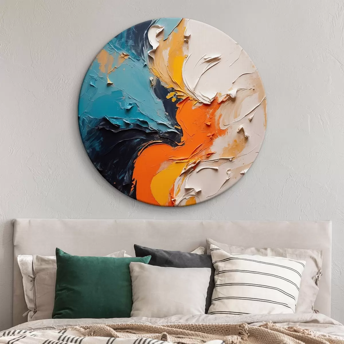 Obrázok Abstraktná maľba v štýle olejomaľby s oranžovou, modrou a bielou farbou Nr r43094