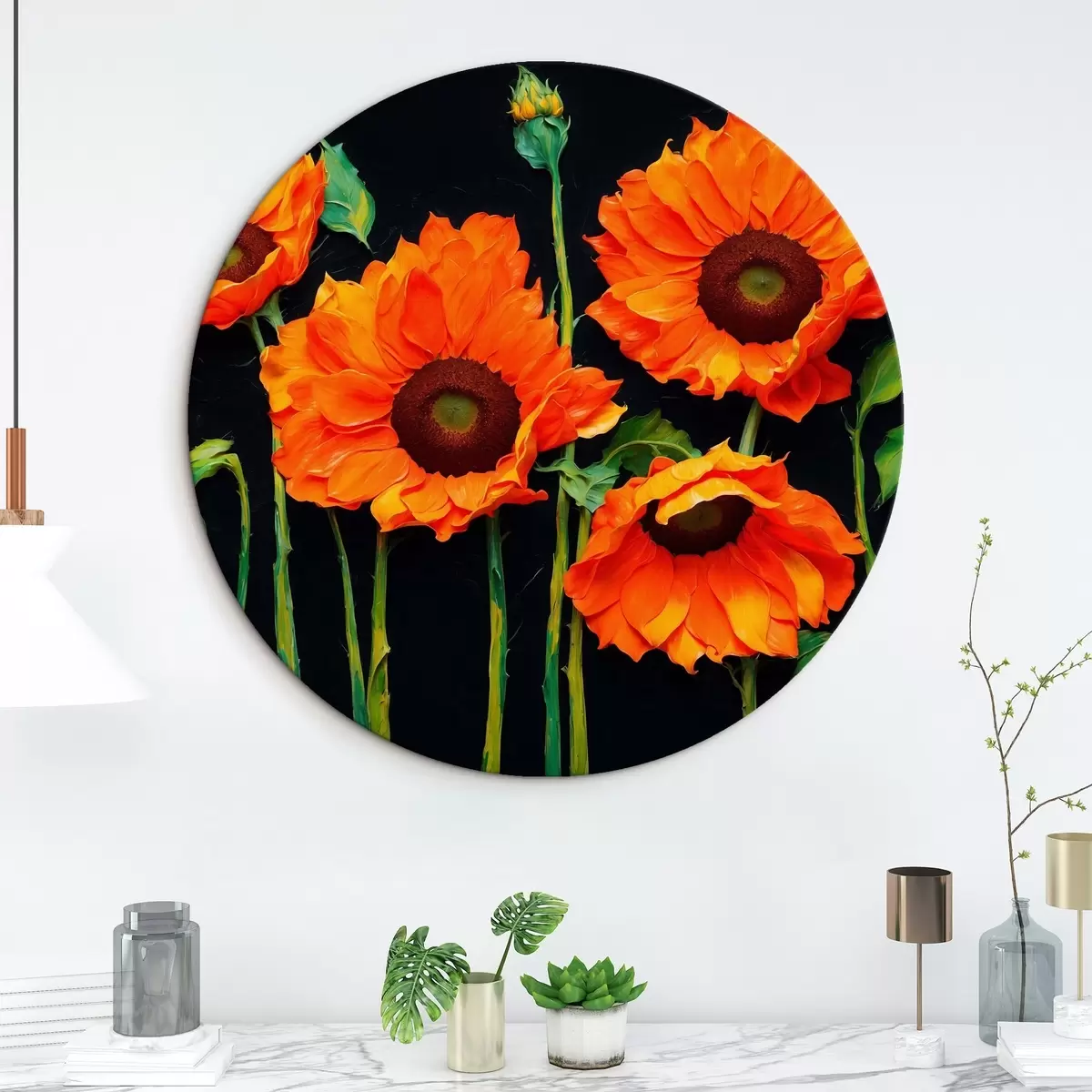 Obrázok Červené slnečnice na tmavom pozadí Nr r43103